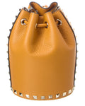 - Rockstud Grainy Leather Bucket Bag In Brown Grainy Leather With Platinum-Finish Rockstuds