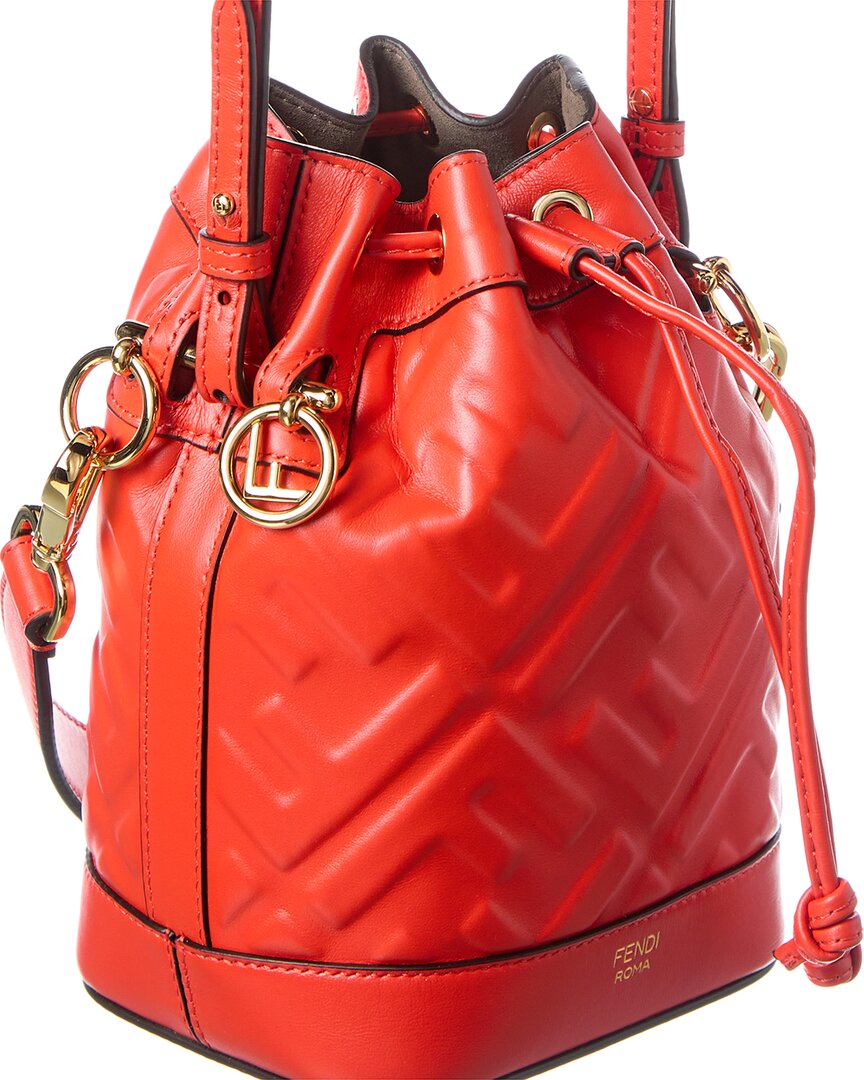 - Mon Tresor Mini Leather Bucket Bag In Red Leather And Gold-Tone Hardware