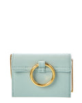 - Vlogo Leather Card Holder In Grey Leather And Gold-Tone Hardware With Vlogo, Ring Accent And Chain Strap