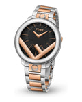 Swiss Made Quartz Movement | 36mm Rose Gold/Stainless Steel Case | Two Tone Bracelet | Black Opalin Dial | 5 ATM | Folding Buckle | 2 year limited warranty