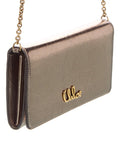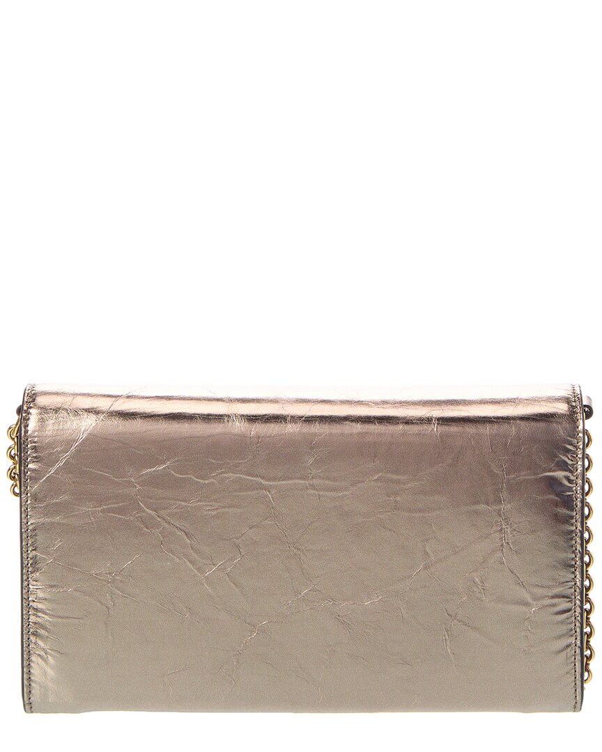 - Iconic Leather Wallet On Chain In Shiny Grey Metallic Leather And Gold-Tone Hardware With Logo Accent