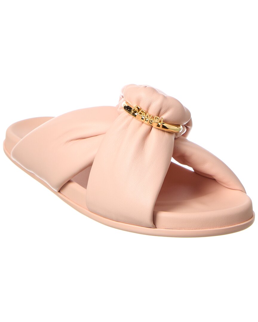 - Feel Leather Sandal In Pink Leather With Gold-Tone Ring Accent