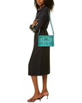 - Amber Monogram Matelasse Leather Crossbody In Bermuda Green Leather And Gold-Tone Hardware With Tassel Accent