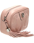 - Amel Monogram Leather Crossbody In Pale Rose Leather And Silver-Tone Hardware With Stud Embellishments And Tassel Charm