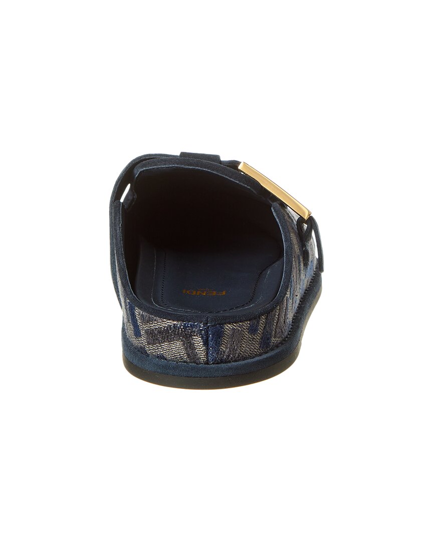 - Ff Logo Jacquard & Suede Mule In Navy Ff Jacquard Fabric And Suede And Gold-Tone Hardware With Logo Accent