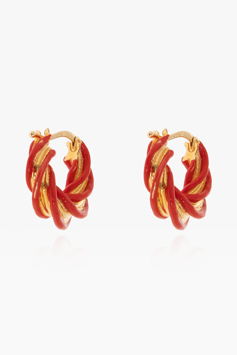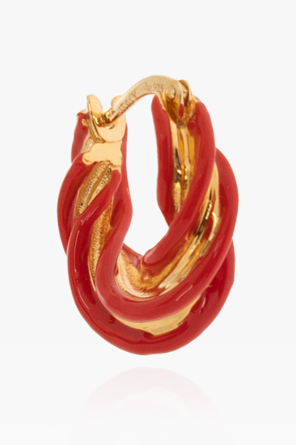 Silver earrings plated with 18k gold and red trimming from BottegaVeneta.