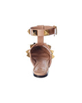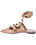 - Roman Stud Leather Ankle Strap Flat In Pink Leather With Gold-Tone Hardware And Roman Studs
