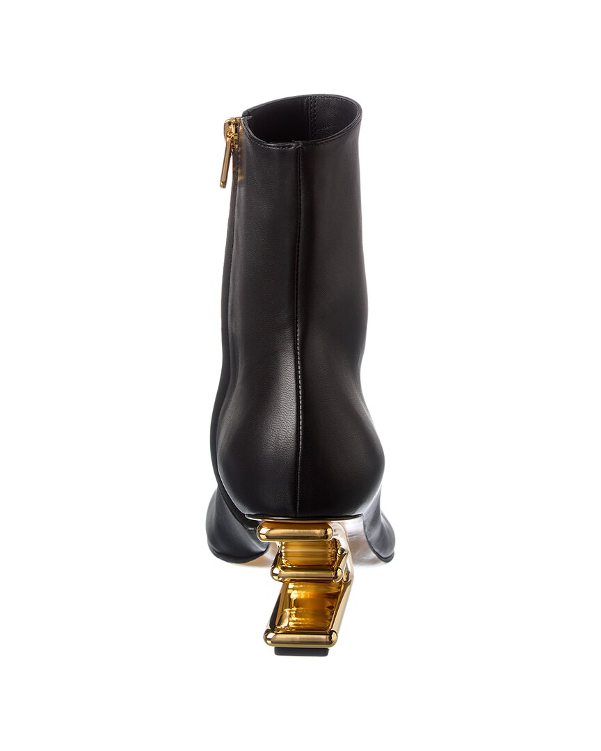 - First Leather Bootie In Black Leather And Gold-Tone Hardware With Logo Heel