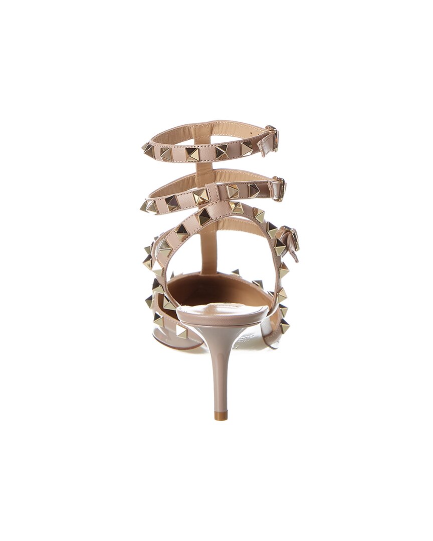 - Rockstud Caged 65 Patent Ankle Strap Pump In Powder Patent Leather With Platinum-Finish Rockstuds