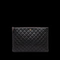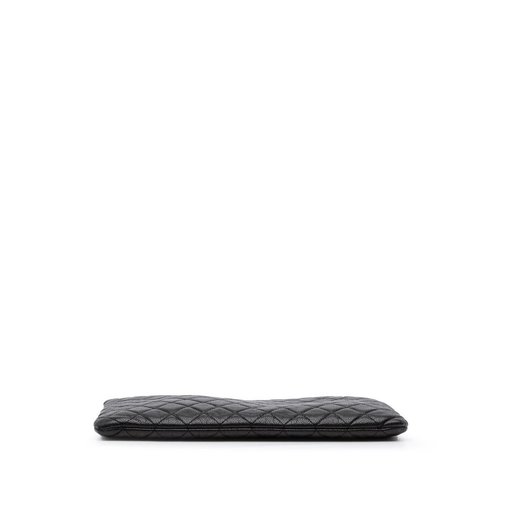 This clutch bag features a quilted caviar leather body and a top zip closure. It carries a B+ condition rating.Exterior Back Creased. Exterior Back stained with Other. Exterior Corners Worn. Exterior Front Creased. Interior Lining stained with Pen Mark, Other. Zipper Rusty/Tarnished. Dimensions:Length 33.5cmWidth 1.5cmHeight 23.5cmOriginal Accessories: This item has no other original accessories.Serial Number: 18826554Color: BlackMaterial: Leather x Caviar Leather