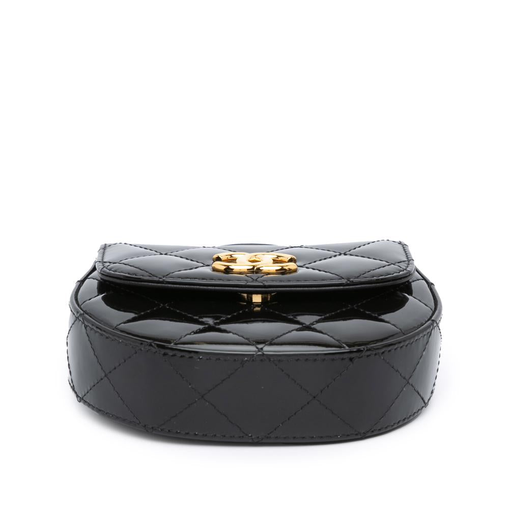 This satchel features a quilted patent leather body, flat top handle, a leather woven chain strap, a front flap with magnetic closure, and an interior slip pocket. It carries an AB condition rating.Exterior Back Worn. Exterior Bottom Worn. Lock Scratched. Exterior Corners Worn. Embellishment Scratched. Interior Lining Creased. Practical Attachment Scratched. Exterior Side Worn. Dimensions:Length 13cmWidth 4cmHeight 11cmHand Drop 3cmShoulder Drop 58cmOriginal Accessories: Dust BagSerial Number: A7U6CANHColor: BlackMaterial: Leather x Patent Leather