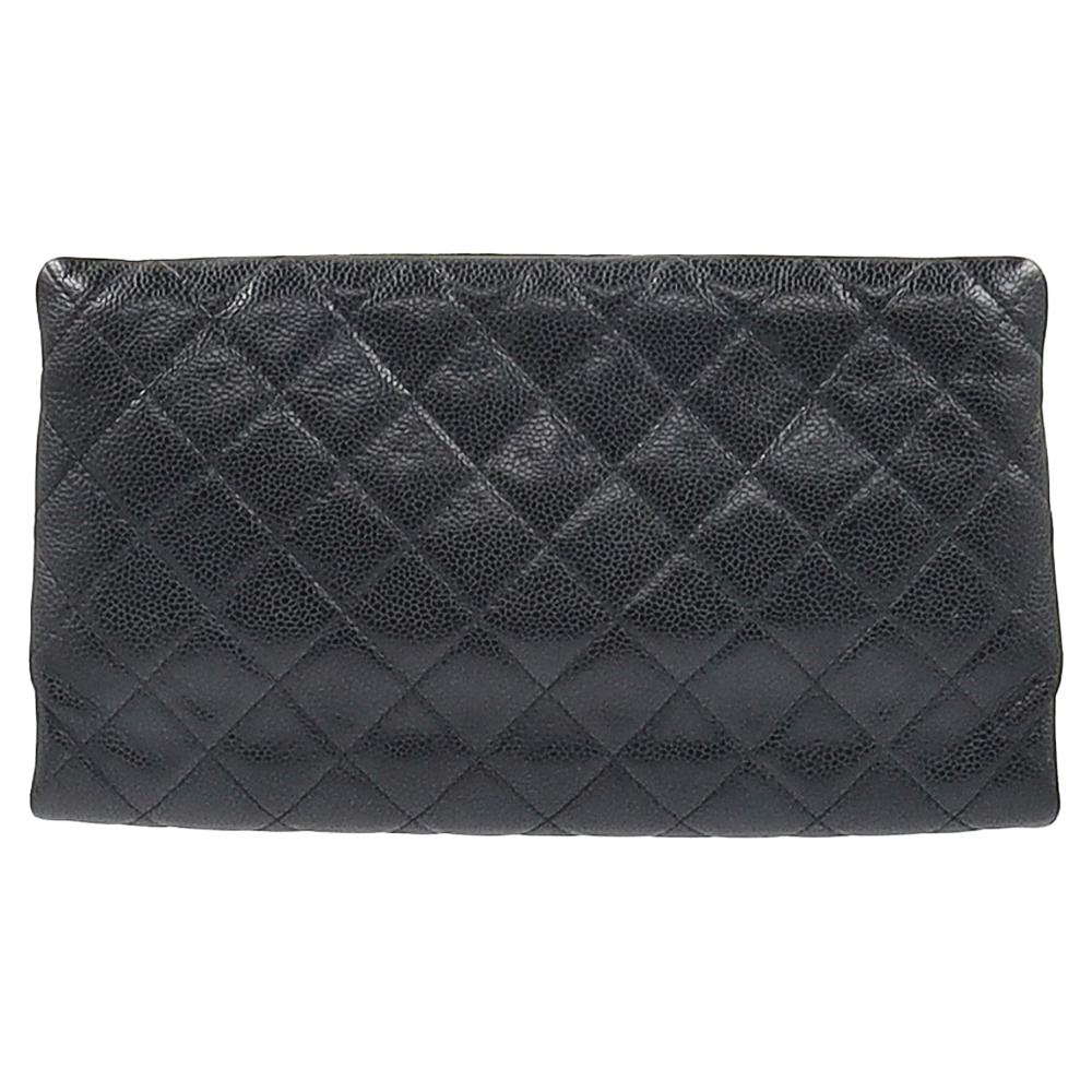 Chanel Beauty CC Quilted Caviar Clutch in Black Leather