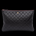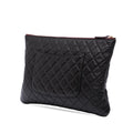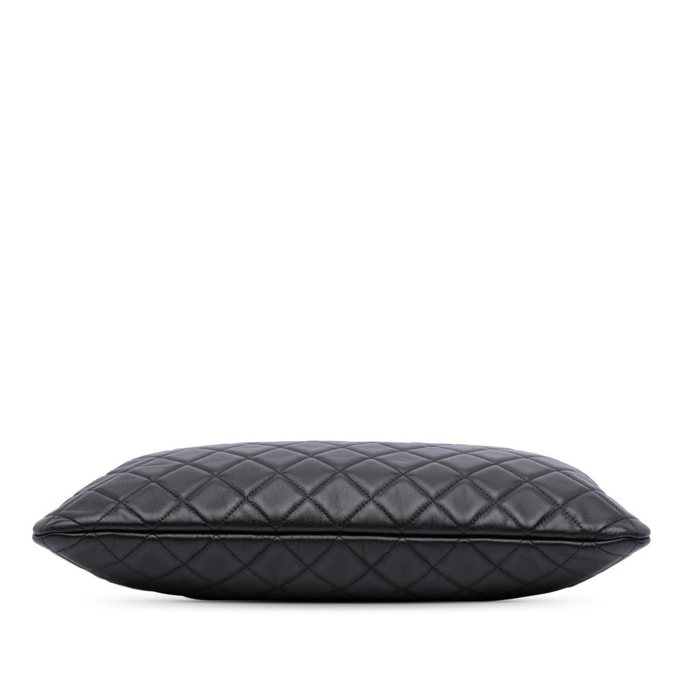 This clutch features a quilted lambskin leather body and a top zip closure. It carries a B+ condition rating.Exterior Back Worn. Exterior Corners Worn. Exterior Front Worn. Exterior Side Worn. Zipper Rusty/Tarnished, Scratched. Dimensions:Length 34cmWidth 1cmHeight 23cmOriginal Accessories: Serial Number: 27741572Color: BlackMaterial: Leather x Lambskin Leather