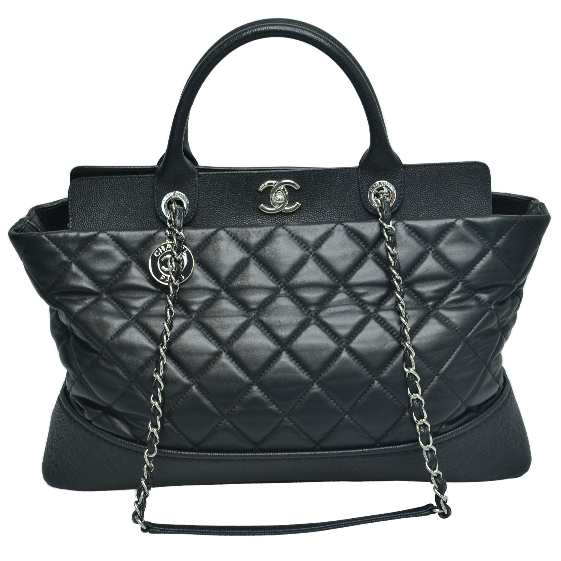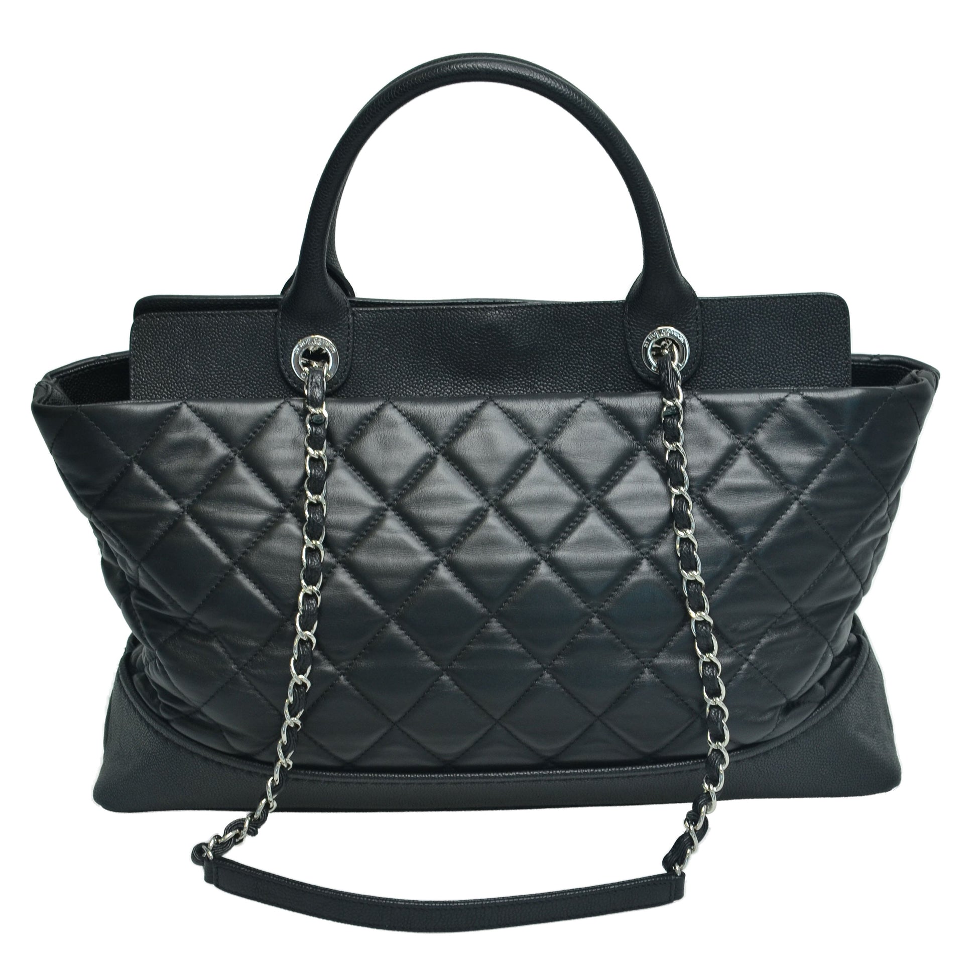 Black Quilted Be CC Double Handle Tote Bag
