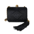 Chanel Black Quilted Satin CC Tassel Box Clutch