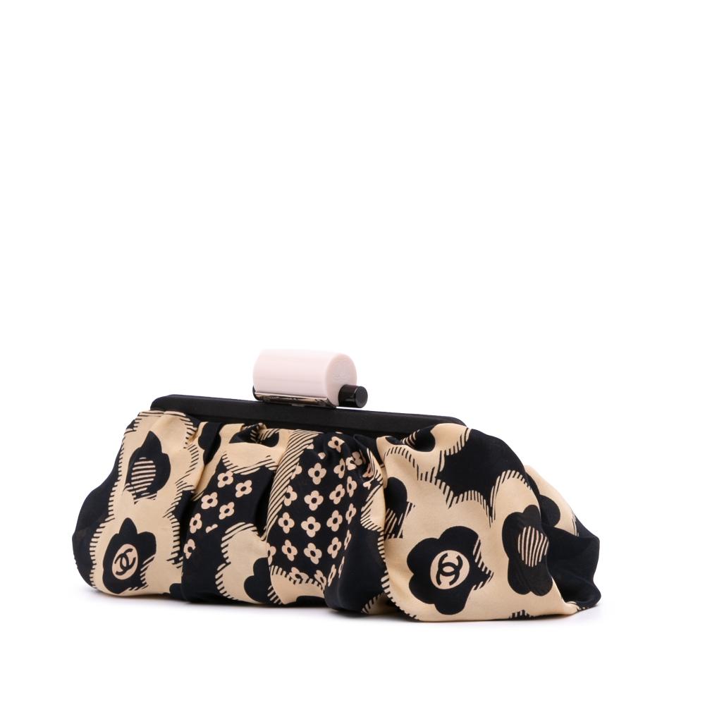 This clutch features a printed silk body, a top frame with clasp closure, and an interior slip pocket. It carries a B+ condition rating.Exterior Back Loose Stitching. Exterior Back stained with Other. Lock Scratched. Item has an odor of Other. Dimensions:Length 26cmWidth 8cmHeight 12cmOriginal Accessories: This item has no other original accessories.Serial Number: 9948203Color: BlackMaterial: Fabric x Silk