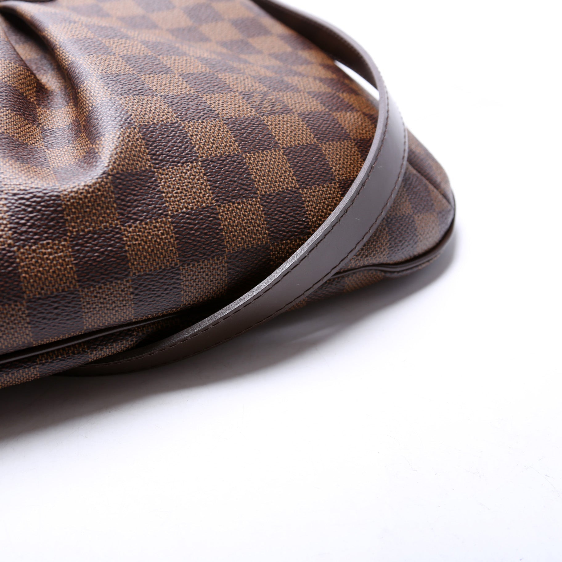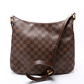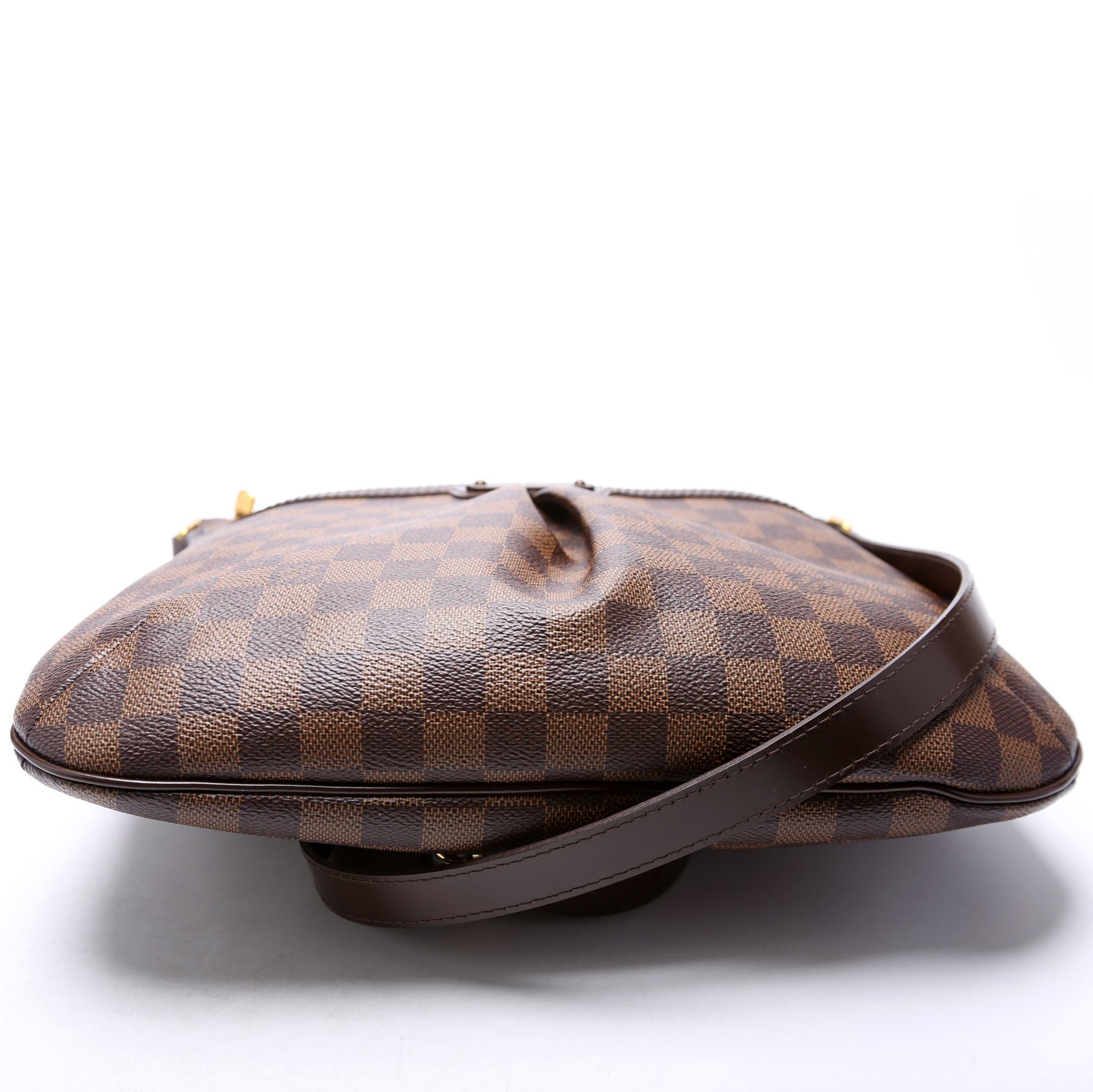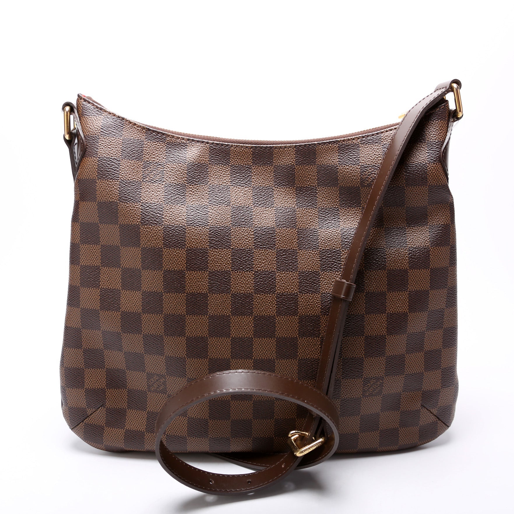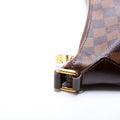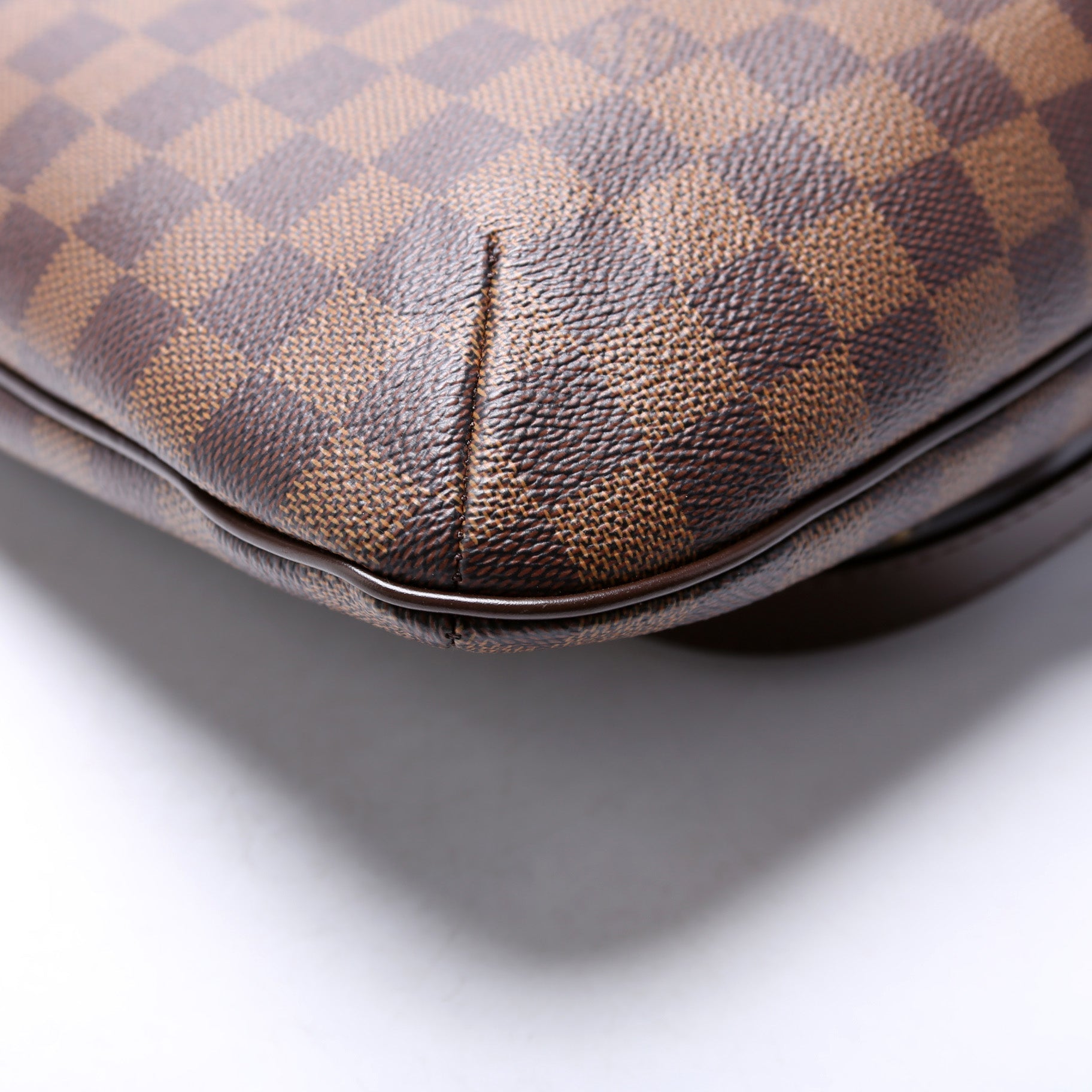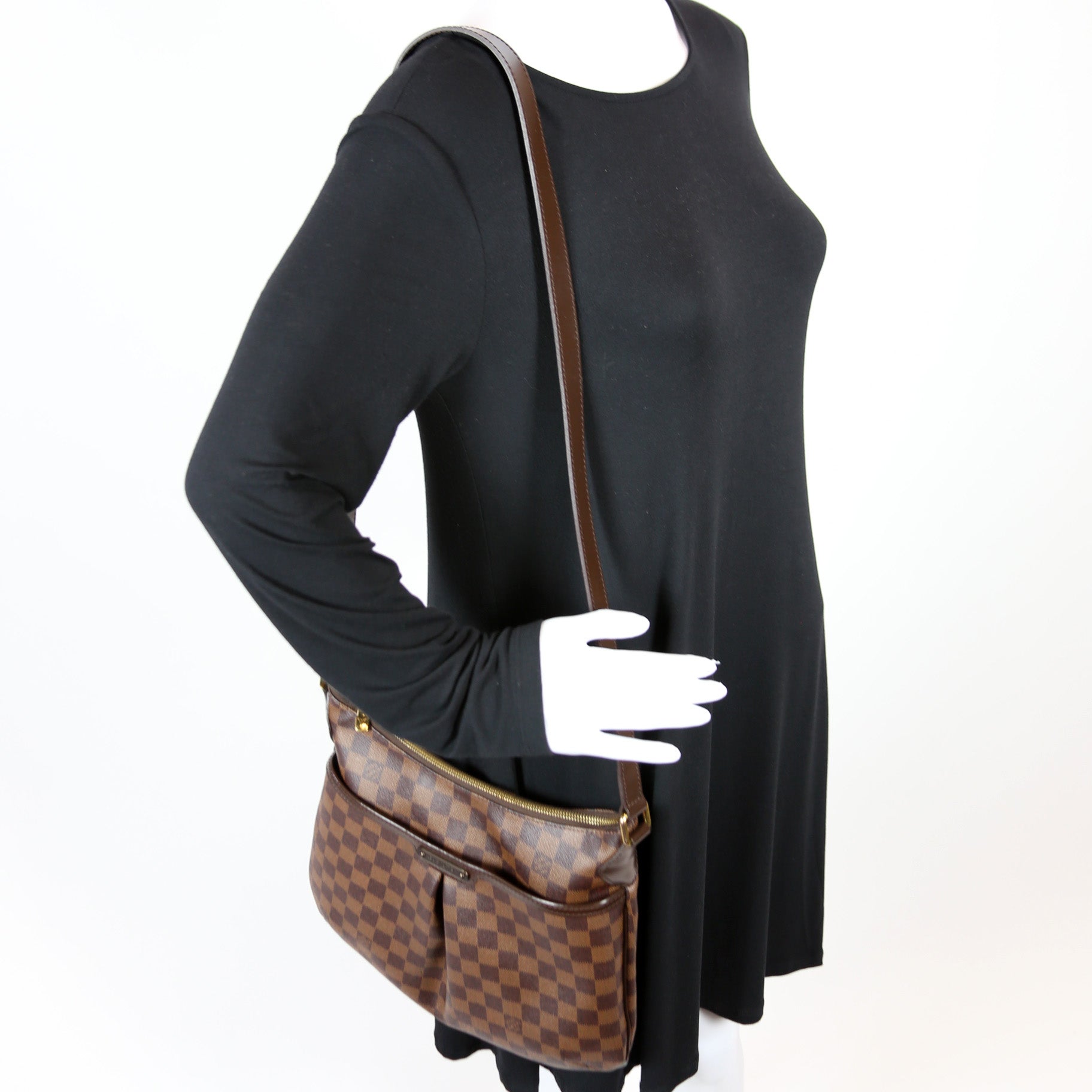 This Louis Vuitton Bloomsbury PMis eye catching bag. The exterior is in the classic Louis Vuitton Damier Ebene coated canvas.