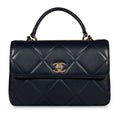 Sleek, stylish and sophisticated Chanel presents one of their most beloved handbags - the Chanel Trendy CC Flap Bag. Crafted from Deep Navy Blue lambskin leather and accentuated by champagne-gold tone hardware, this gorgeous handbag is a piece that will never go out of style. The perfect accessory to compliment anything in your wardrobe, this colourful quilted bag is the ideal companion for any and every occasion. No matter the time or place, the Trendy CC is your ultimate go-to for casual or dressy events. A well-worthy addition to any luxury handbag collection, the Trendy CC is the perfect investment piece for any woman who already has the Classic Flap and / or the Boy bag. A timeless accessory you’ll wear and love forever, this crimson Chanel isn’t just a want – she’s a need.