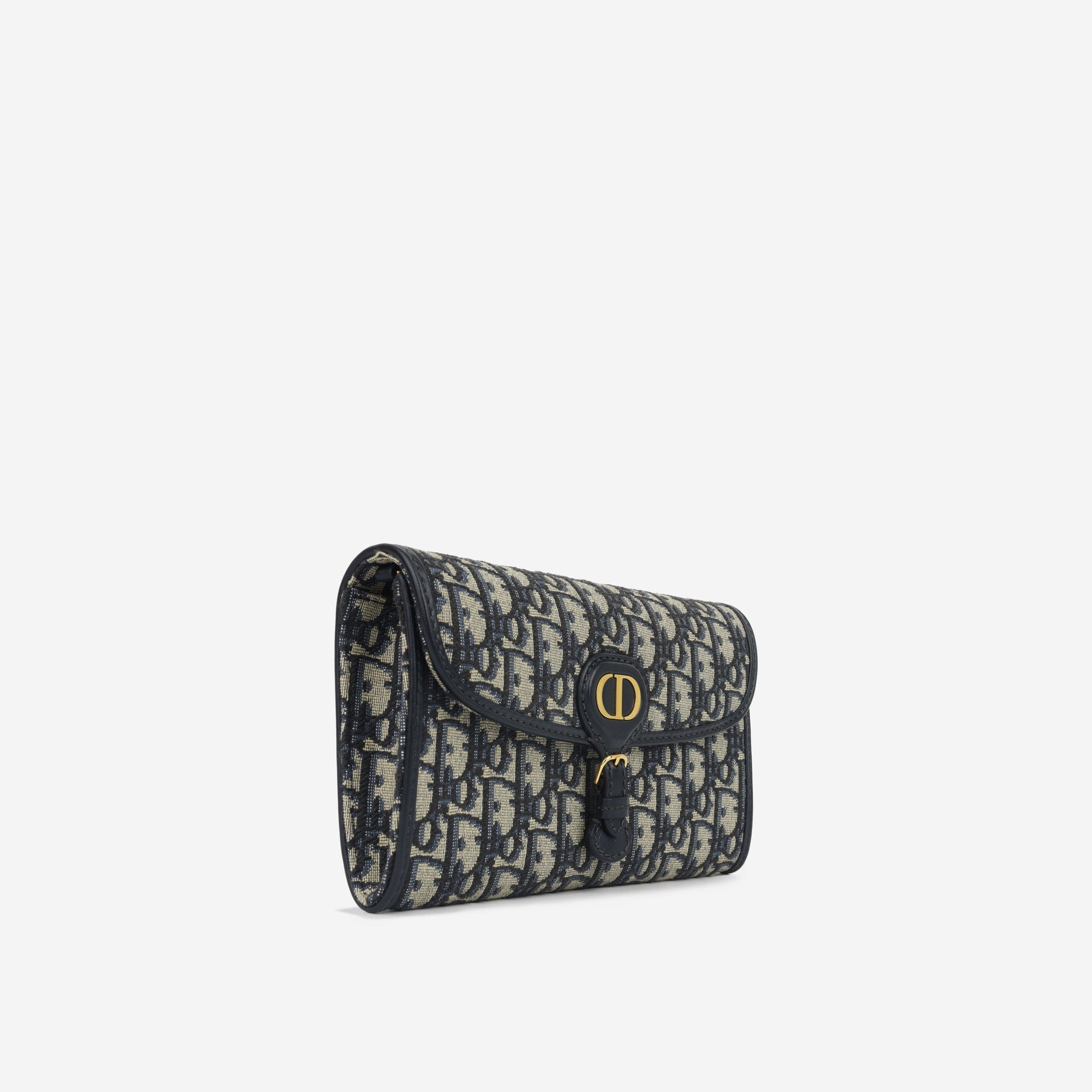 Crafted in blue Dior Oblique jacquard and is both modern and elegant. Enhanced by a flap adorned with a decorative CD buckle, it features a practical compartment that includes a small, removable zipped pouch. Thanks to its removable chain, the East-West pouch can be worn over the shoulder, crossbody, or carried by hand.