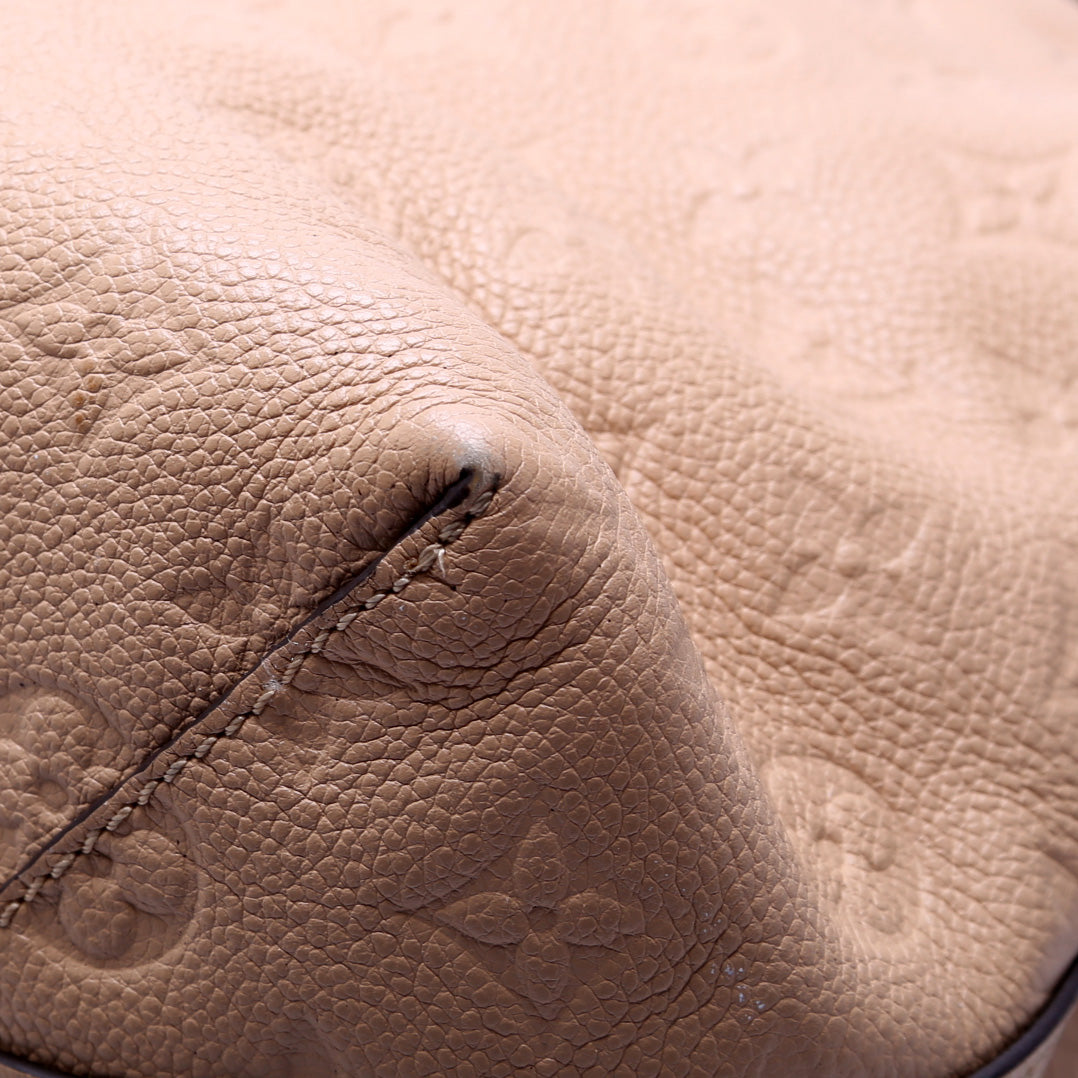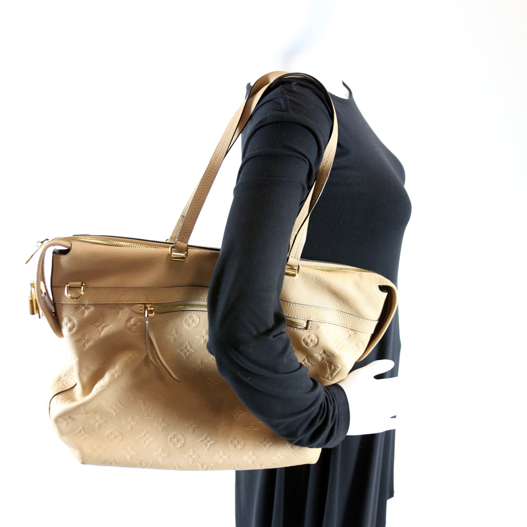 This Louis Vuitton Boetie MM is d 100% . The exterior is in the classic Louis Vuitton Empreinte leather.