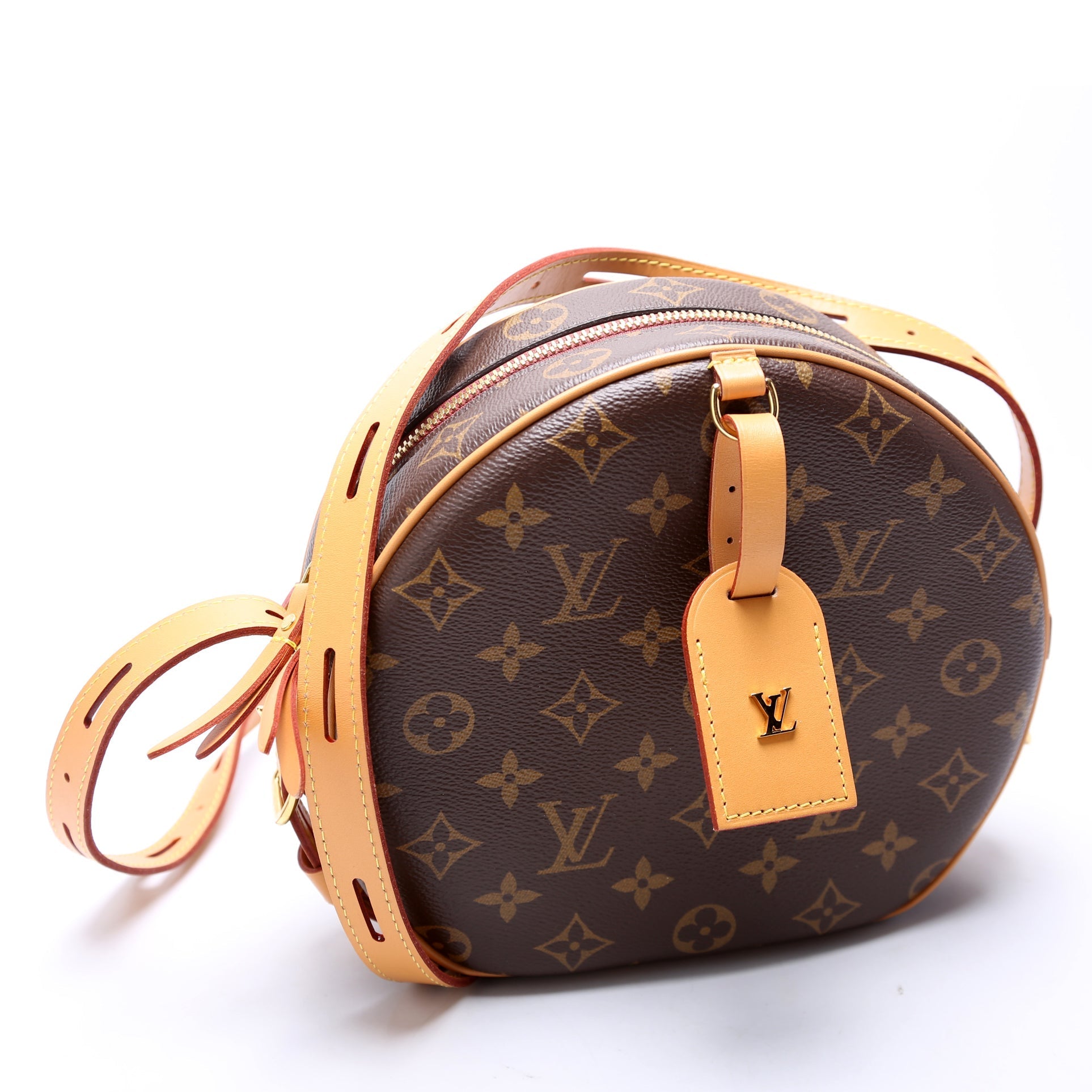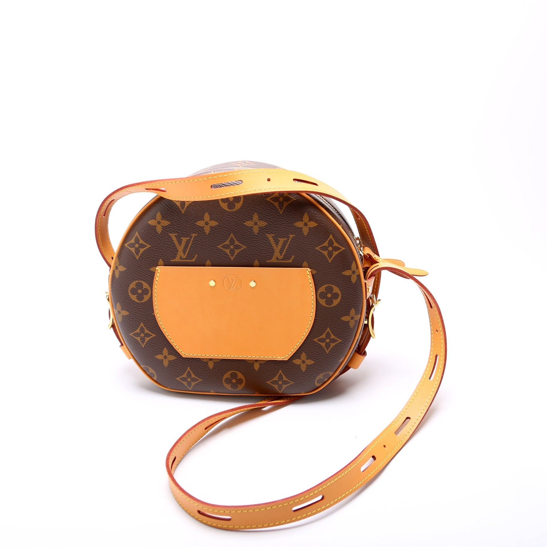 This Louis Vuitton Boite Chapeau Souple MMis eye catching bag. The exterior is in the classic Louis Vuitton Monogram coated canvas.