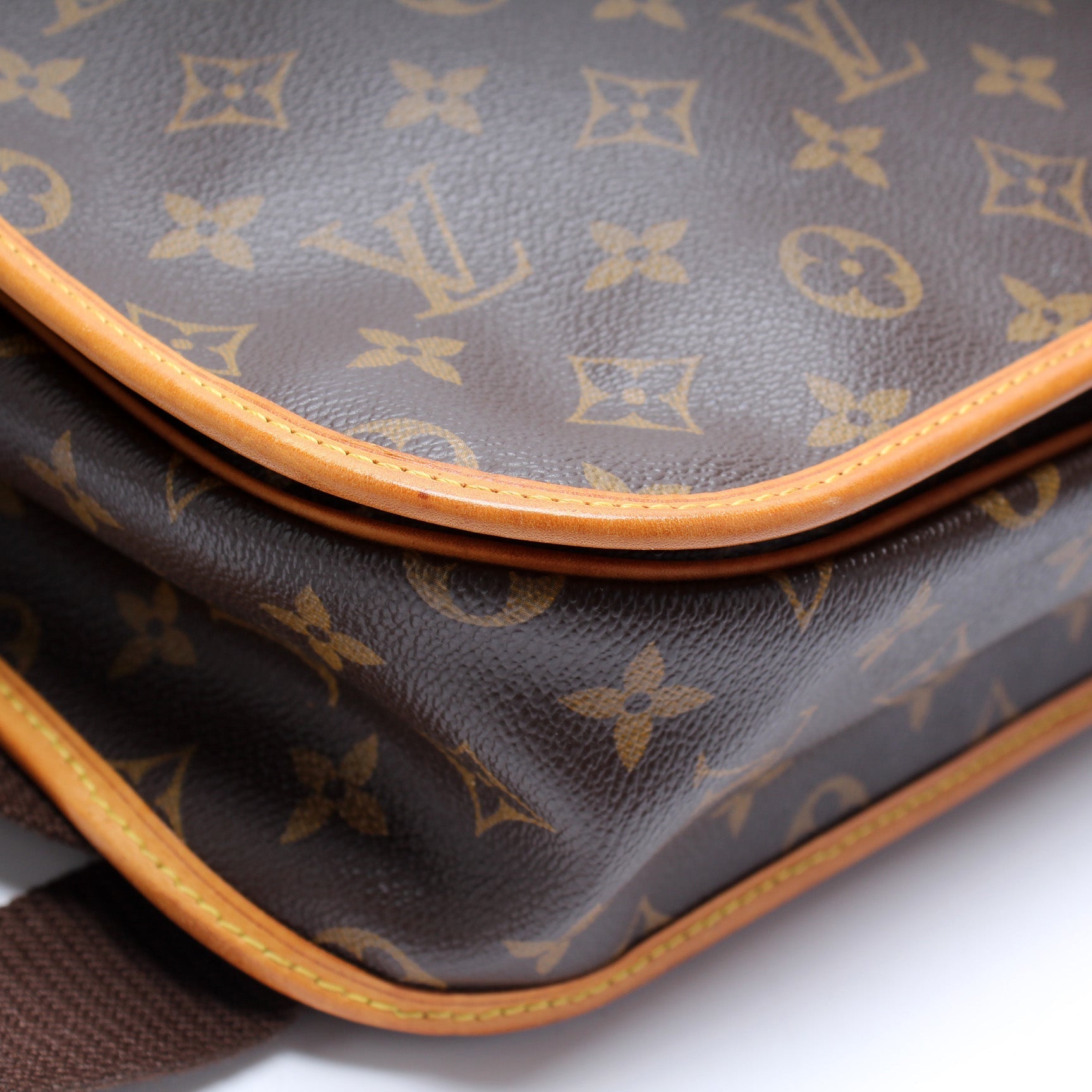 This Louis Vuitton Bosphore Messenger GMis eye catching bag. The exterior is in the classic Louis Vuitton Monogram coated canvas.