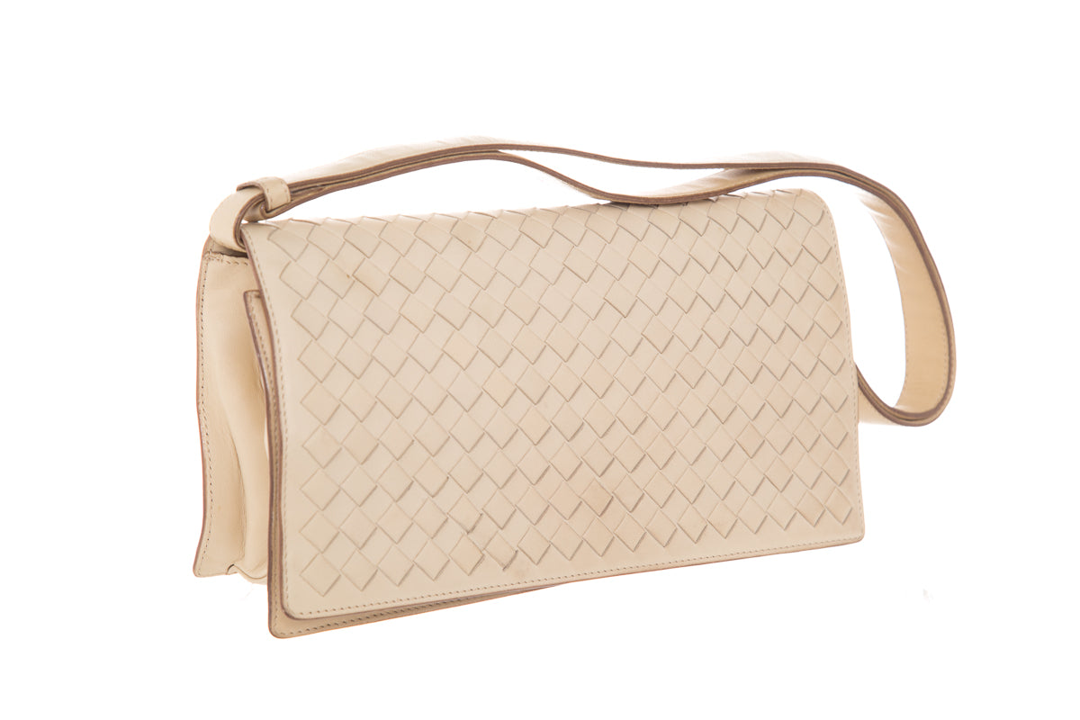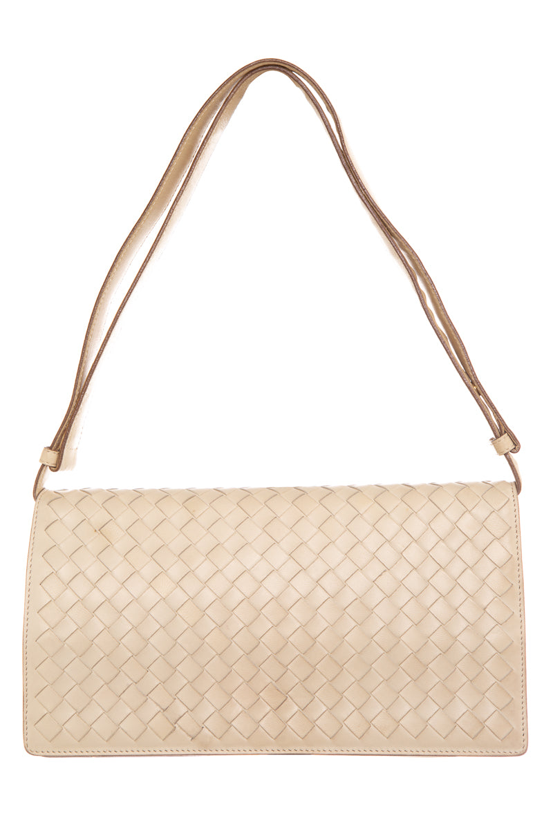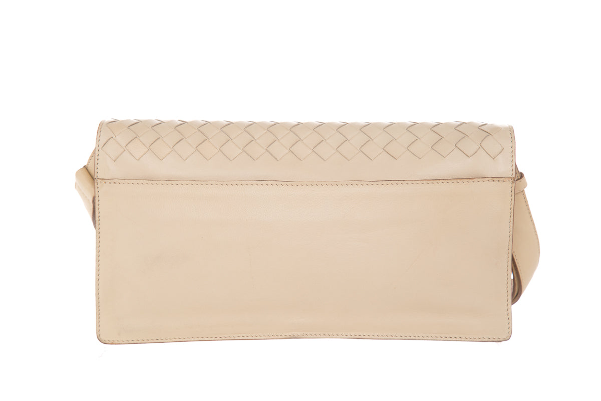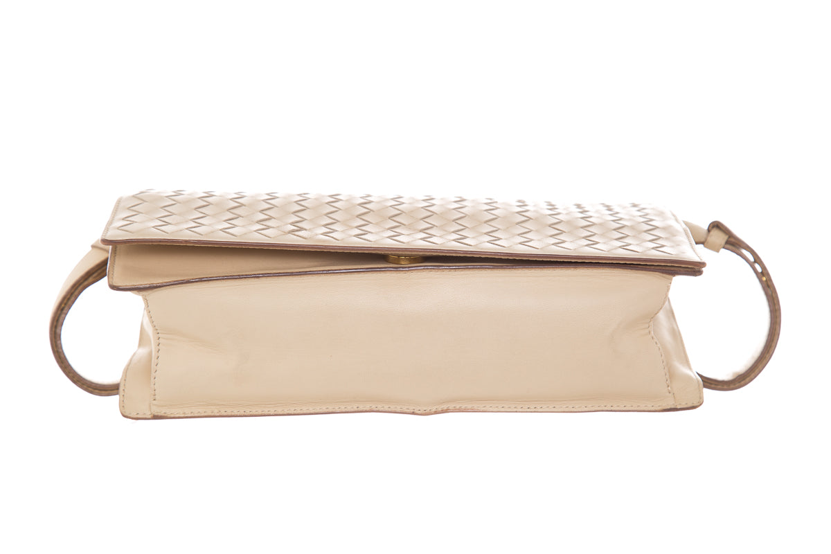 Bottega Veneta Beige Intrecciato Flap Leather Shoulder