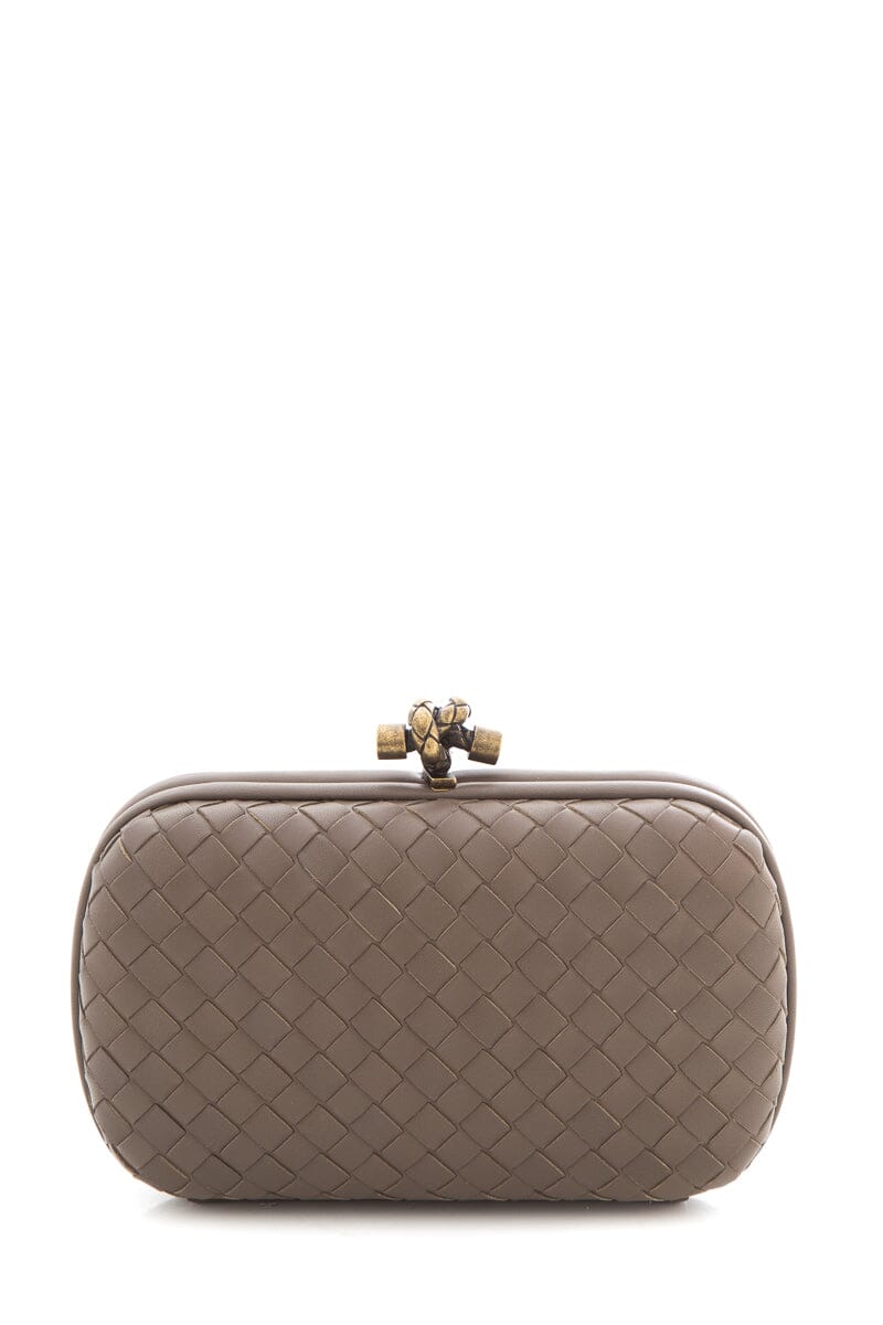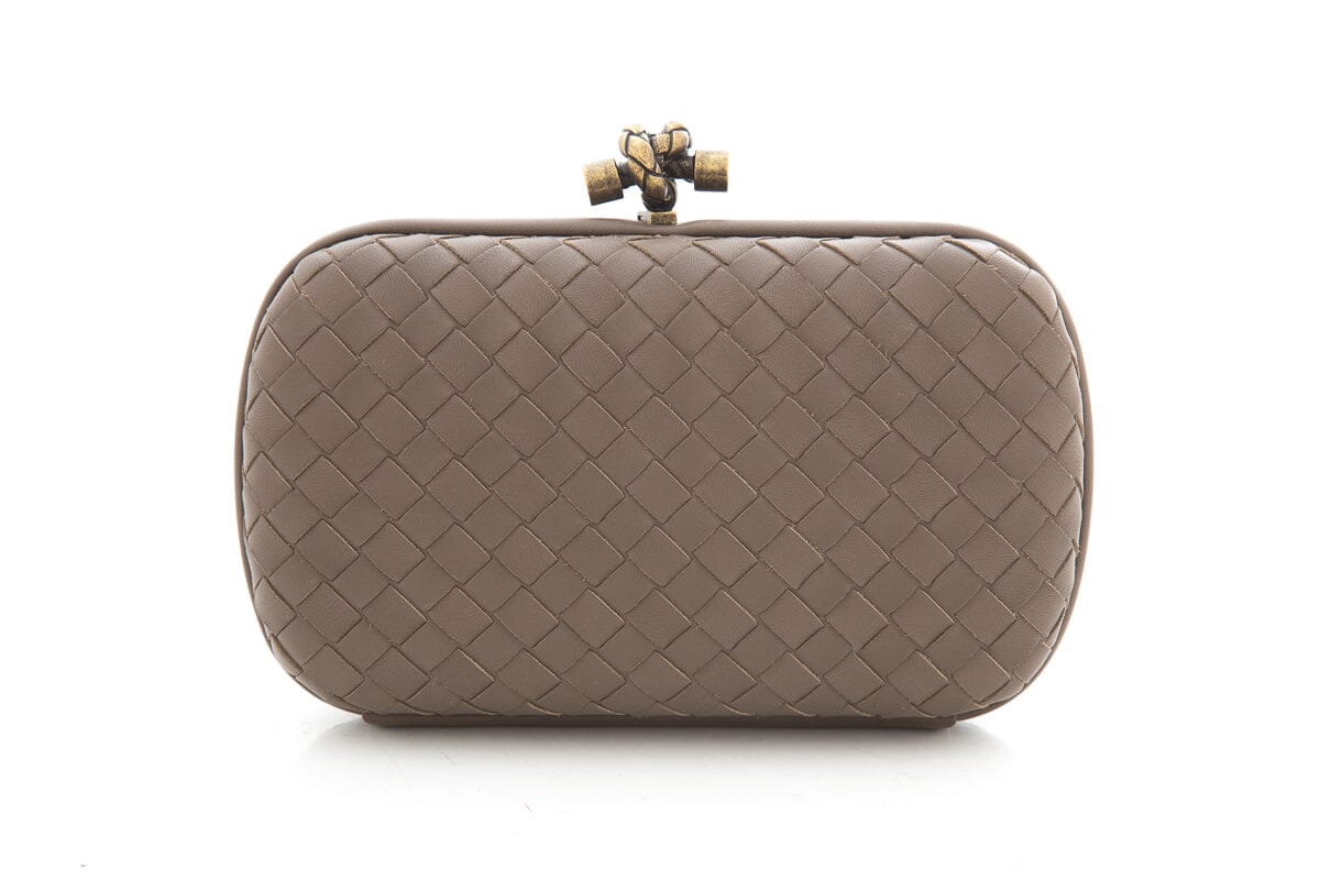 Bottega Veneta Brown Woven Leather Knot Clutch