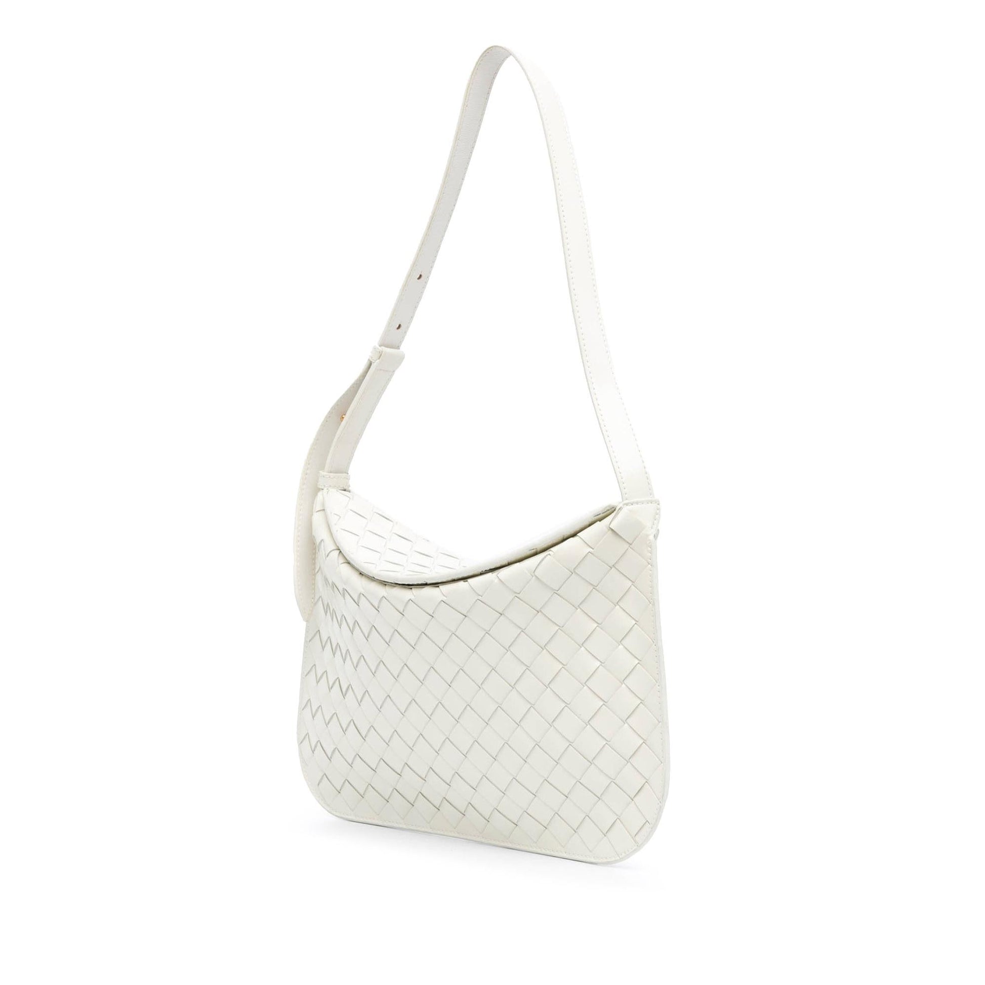 Bottega Veneta Brushed Calfskin Intrecciato Cradle Fold Over Shoulder Bag