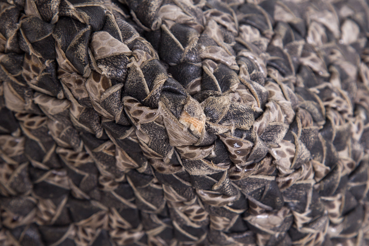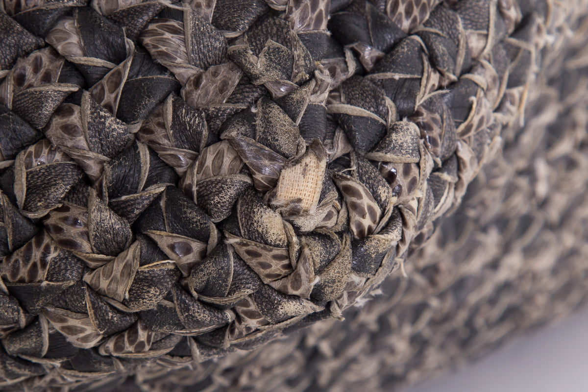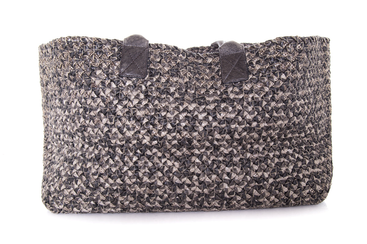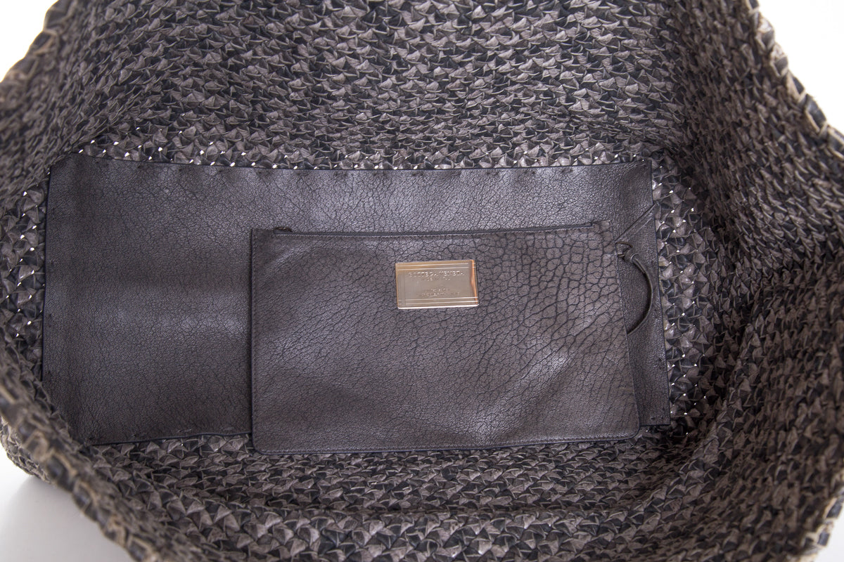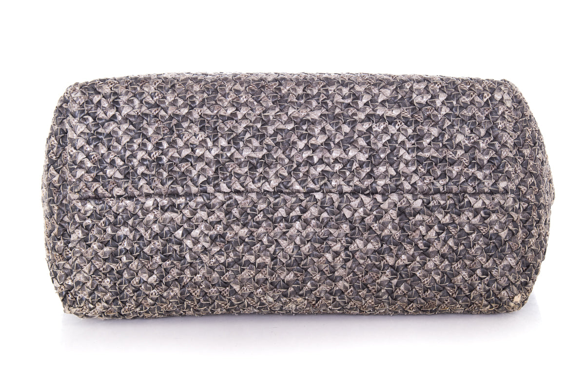Bottega Veneta Grey Large Cabat Tote with snake skin woven detail with dual shoulder straps, comes with interior pouch. This item is in good condition; some wear on exterior corners.