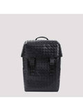 Bottega Veneta Intrecciato Flap Backpack Mat Black