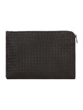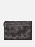 Bottega Veneta Intrecciato Weaving Zipper Clutch Bag Black Brown