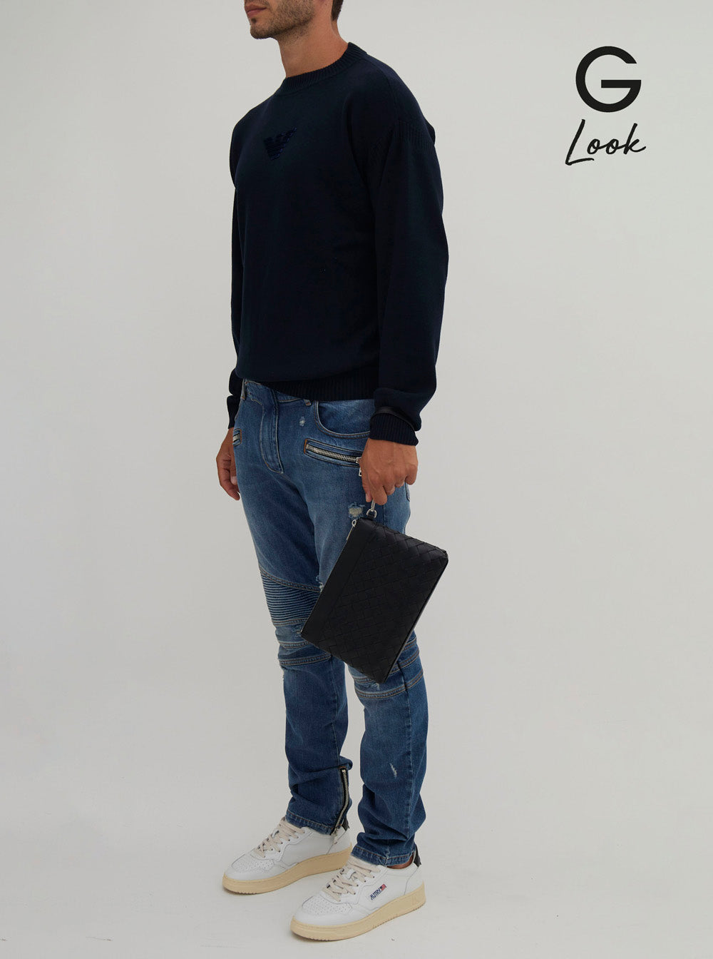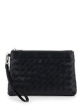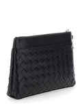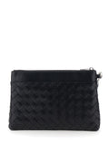 Clutch Black Zip closure Detachable wrist strap Intrecciato motif Silver colored metalware Six card slots Leather Dimensions: 17x25x4 cm Handle drop: 17 cm