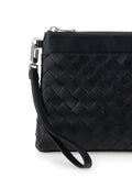 Bottega Veneta Men 'Prism' Black Clutch With Intrecciato Motif In Leather Man
