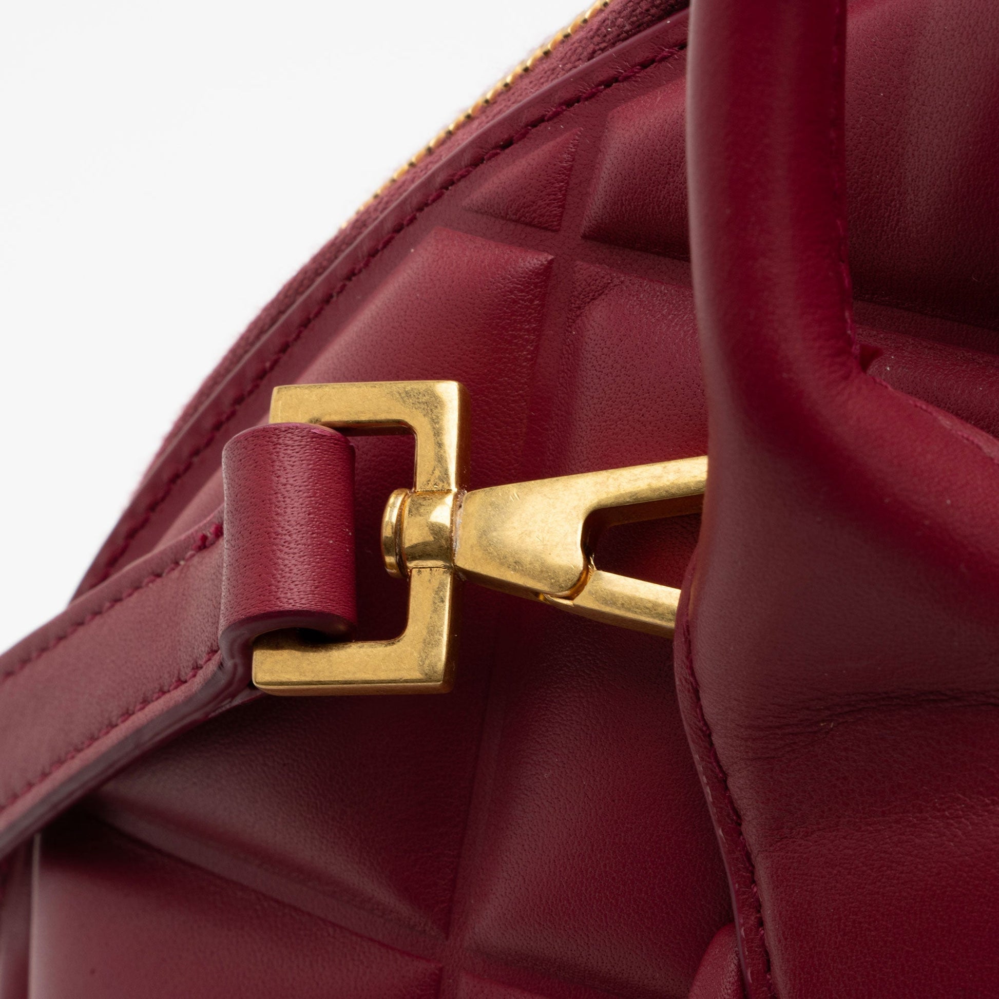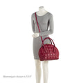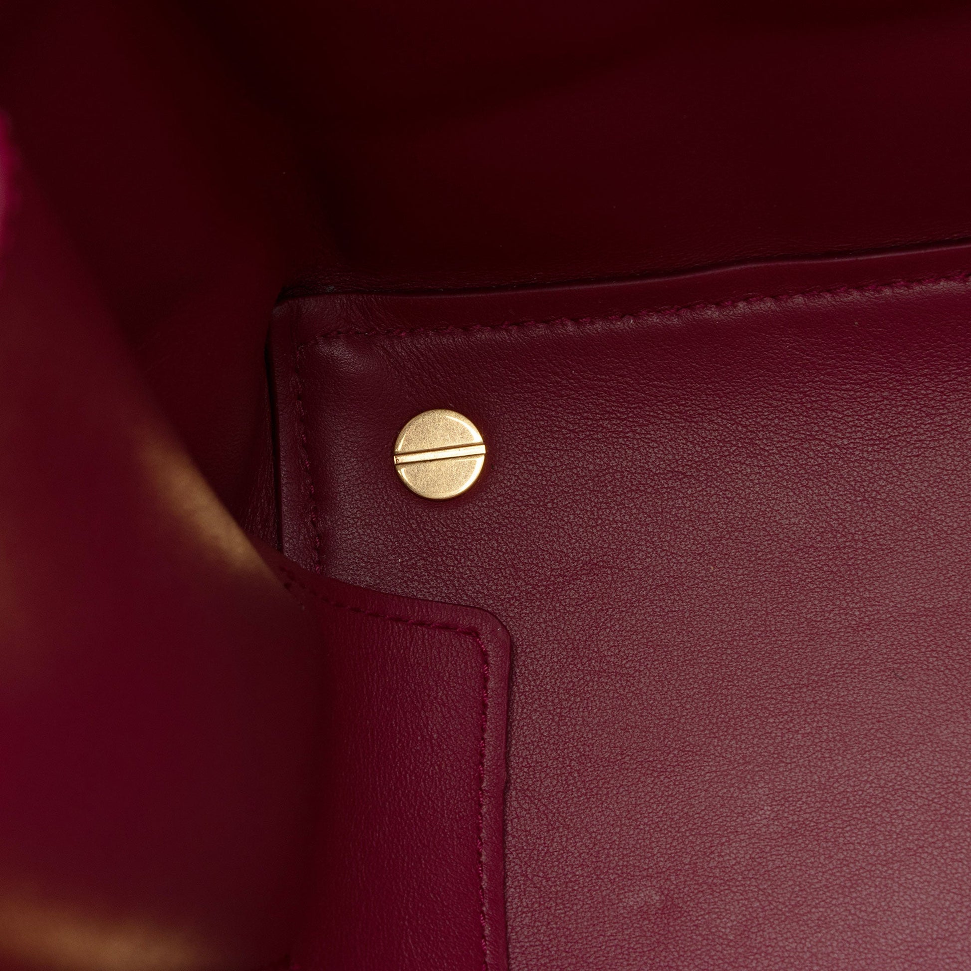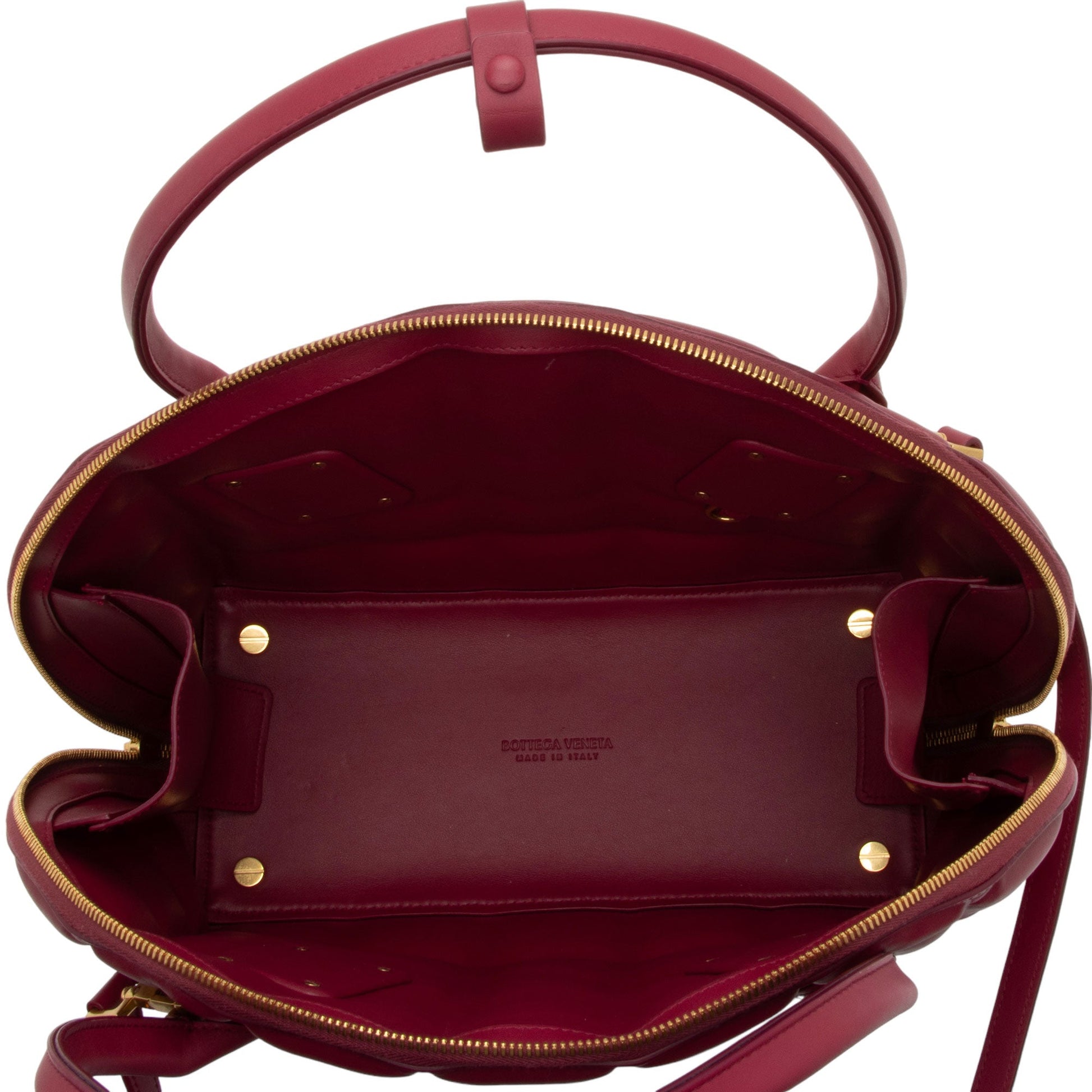 Condition Notes: Subtle warping to shoulder strap and handles. Minor creasing to handle bases. Minor imprints to interior.