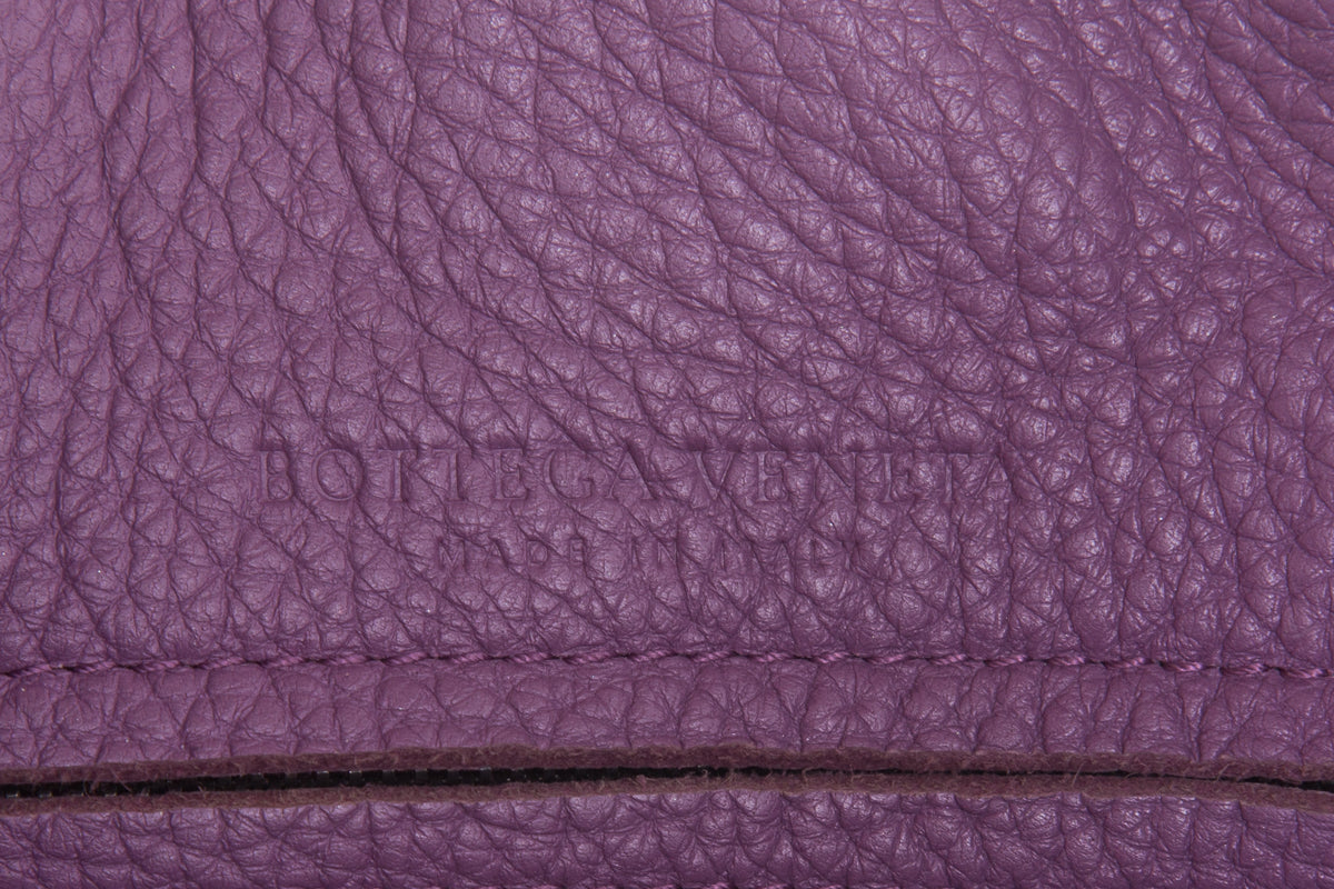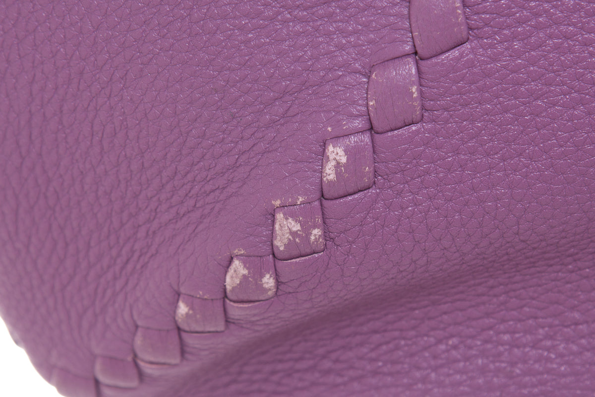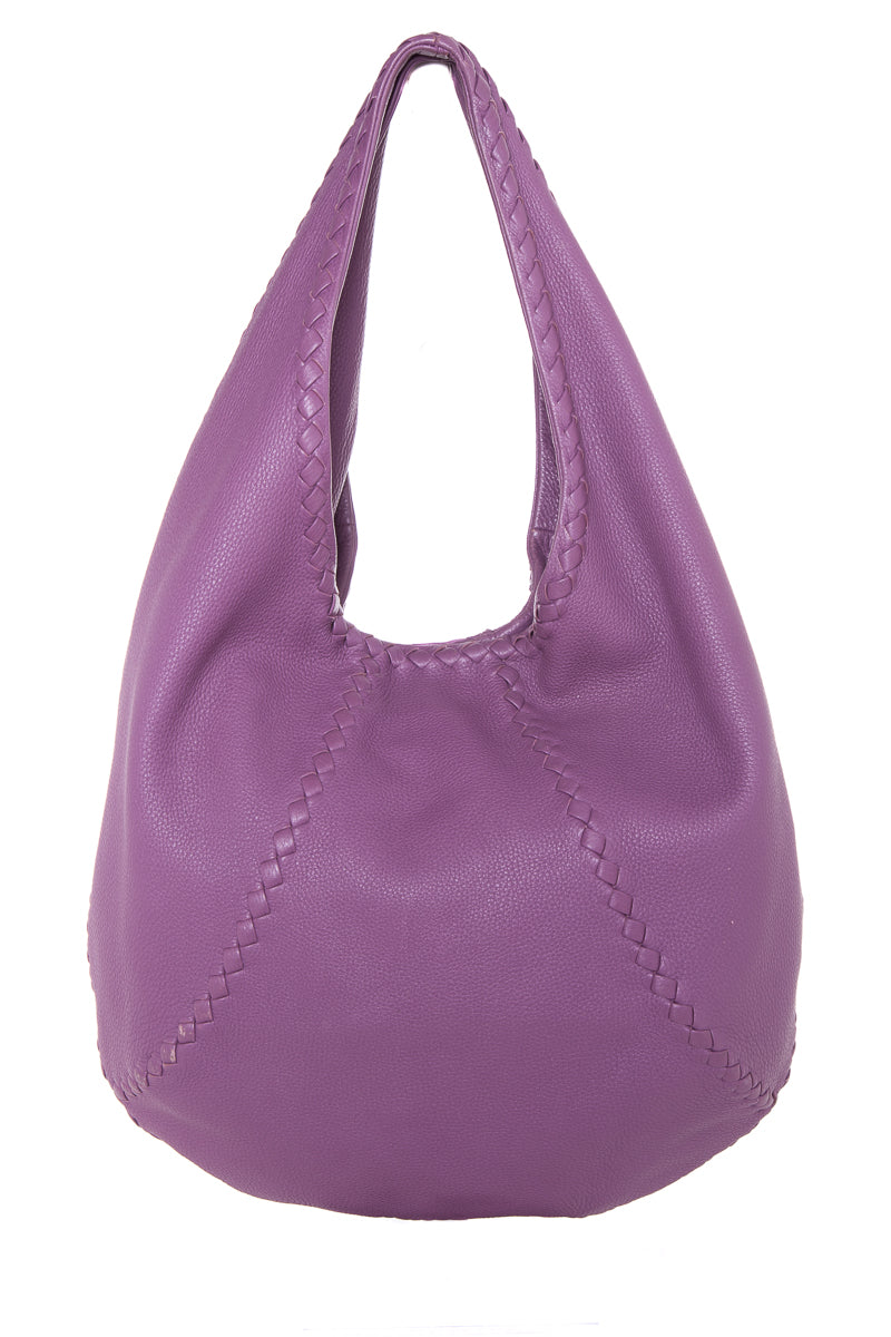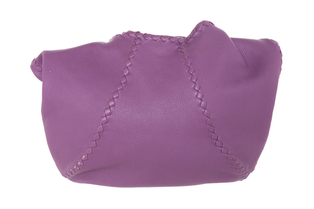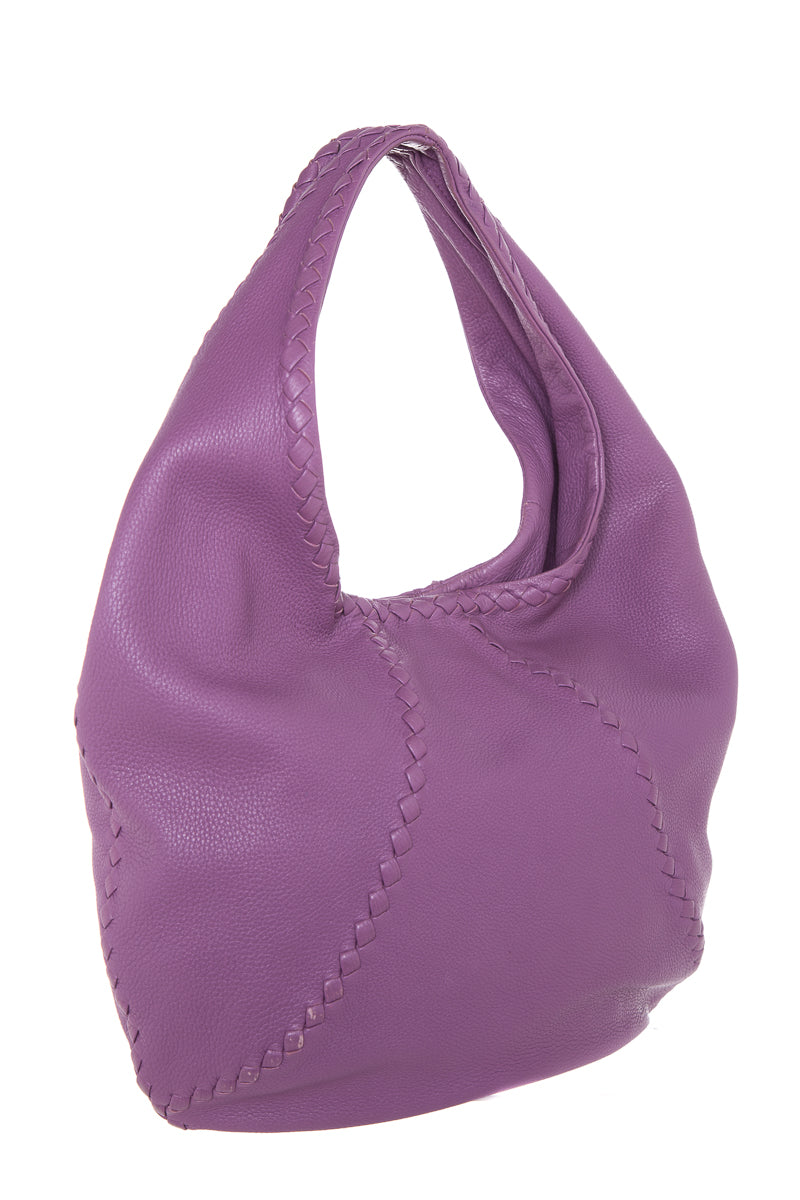 Bottega Veneta Purple Leather Hobo with woven detail and top shoulder strap and single button for closure. This item is in good condition; some scuffing on leather.