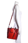Bottega Veneta Red Vesuvio Croc Bucket Shoulder Bag