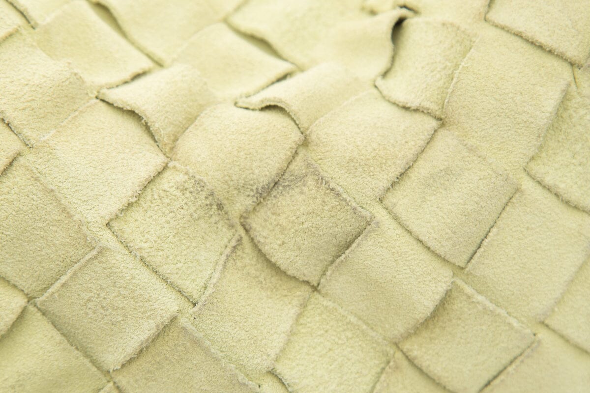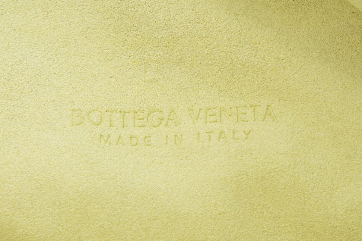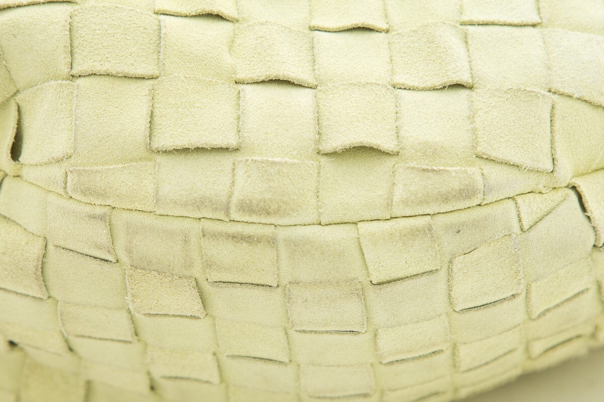 Bottega Veneta Small "Jodie" Yellow Suede Intrecciato Handbag. This item is gently loved; some discoloring on exterior and interior.
