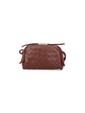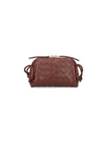 Bottega Veneta 'Concert' clutch bag in brown lamb nappa leather, Intrecciato pattern, sliding shoulder strap, knot detail, double zip closure, maxi zipper detail, inner flat pocket, single inner compartment.