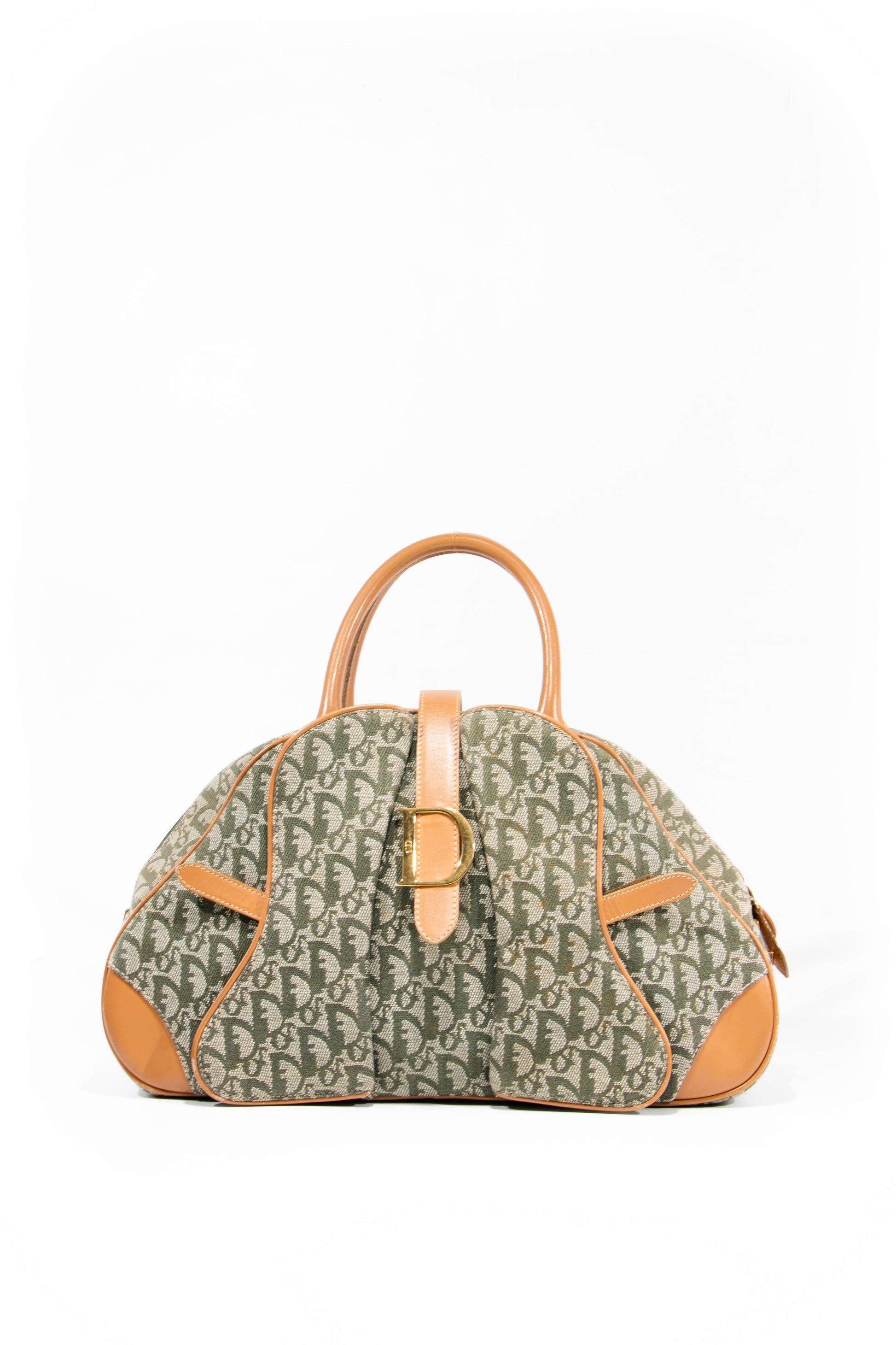Brand: Christian Dior | Style: Bowler | Type: Hand bag | Color: Green | Material: Canvas | Macbook friendly: No | Height: 22 cm. Length: 40 cm. Width: 10 cm. | Condition: Excellent | SKU: 4102