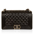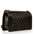 Chanel presents one of its highly-acclaimed and most sought after bags, the Chanel Boy Bag in Medium in the timeless combination of Black Caviar Leather and Ruthenium Hardware. As designed by Karl Lagerfeld, the Boy Bag collection was established to embody boyish charm and femininity. This magnificent handbag is crafted from quilted caviar leather. Its charm is only fortified through the delicate punctuation of ruthenium hardware from the chain-link strap to the signature CC push lock. Its interior features fabulous fabric lining and a single storage compartment, not to mention a subtle slip pocket.