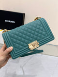 CHANEL BOY BAG MEDIUM 25 EVERGREEN CAVIAR GOLD HARDWARE