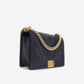 The ‘Boy’ bag, first introduced in 2011 and named after Coco Chanel’s lifetime love, is part of their iconic collection. Previously known as the 'new' medium, the now Large boy bag is the ideal piece to carry with you throughout the day. Wear with the unique hardware chain doubled up over the shoulder for an evening look or wear cross body for a more casual style.