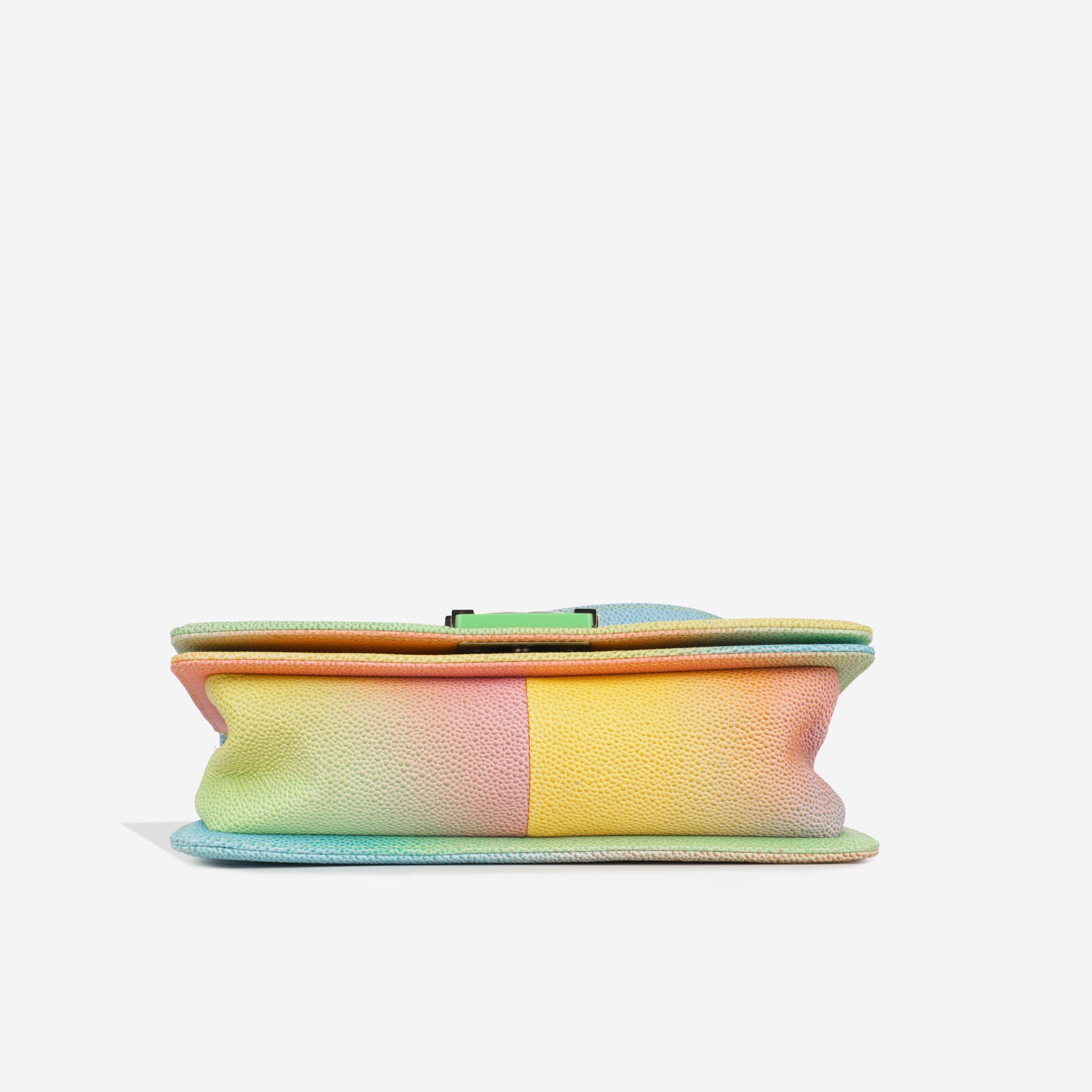 The ‘Boy’ bag, first introduced in 2011 and named after Coco Chanel’s lifetime love, is part of their iconic collection. Previously known as the 'new' medium, the now Large boy bag is the ideal piece to carry with you throughout the day. Crafted from pastel rainbow ombre caviar leather, with silver hardware this bag is perfect for you who wants something unique to your wardrobe.