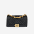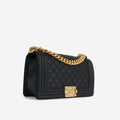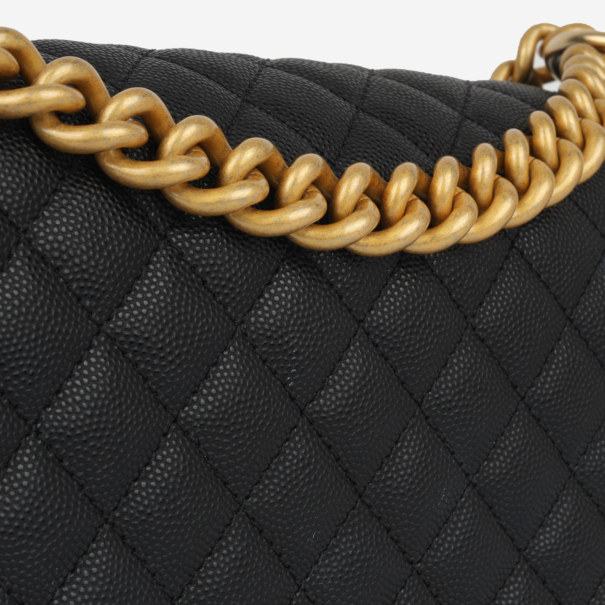The ‘Boy’ bag, first introduced in 2011 and named after Coco Chanel’s lifetime love, is part of their iconic collection. This particular edition is crafted in black caviar leather and can be worn with the chain doubled up over the shoulder for an evening look or wear cross body for a more casual style.