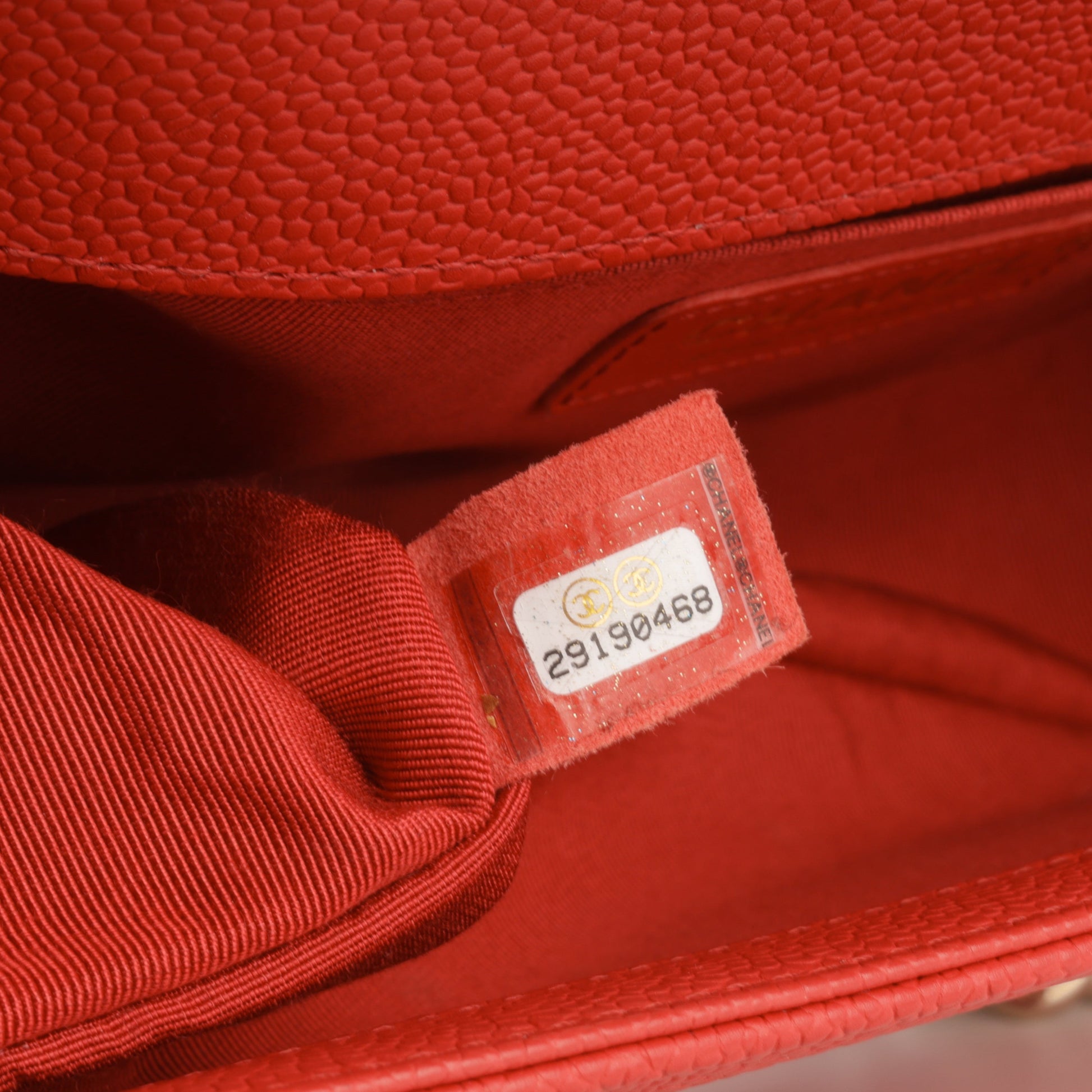 - Red quilted caviar leather