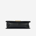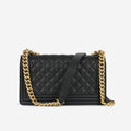 Chanel presents one of its highly-acclaimed and most sought after bags, the Chanel Boy Bag in size Old Medium in the wonderful and limited combination of black/gold embellished tweed and black lambskin leather. As designed by Karl Lagerfeld, the Boy Bag collection was established to embody boyish charm and femininity. This magnificent handbag is crafted from quilted caviar leather.