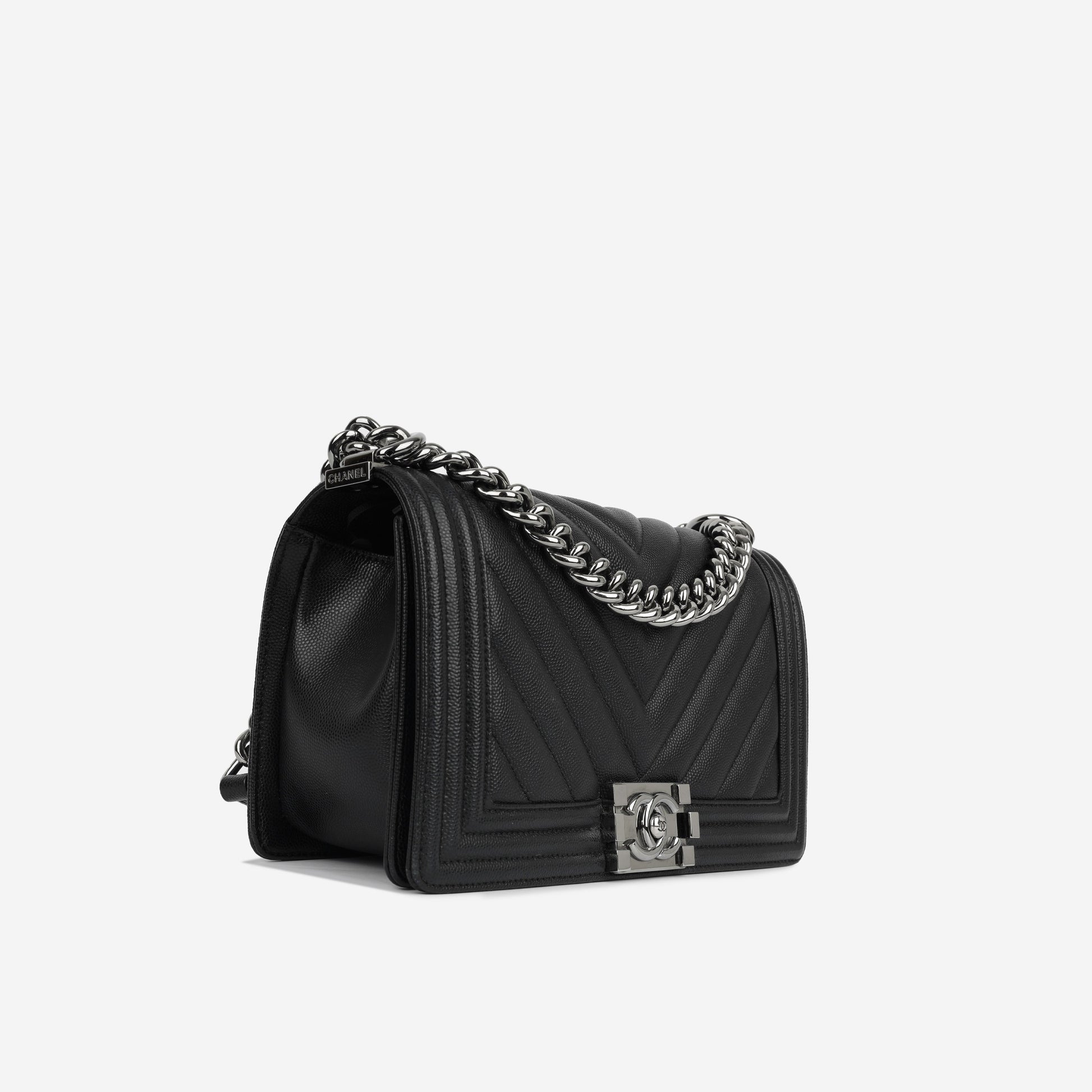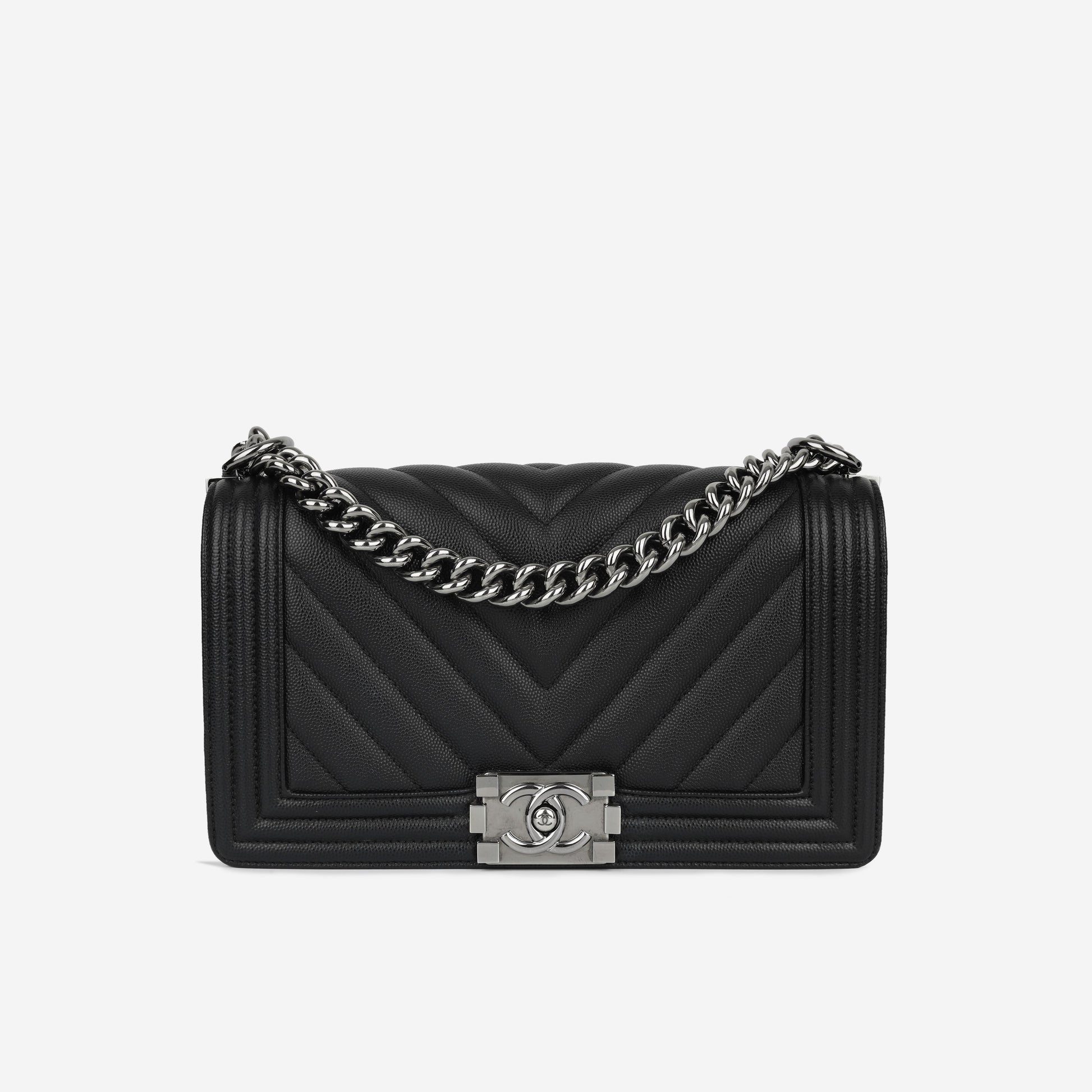 - Black chevron caviar leather