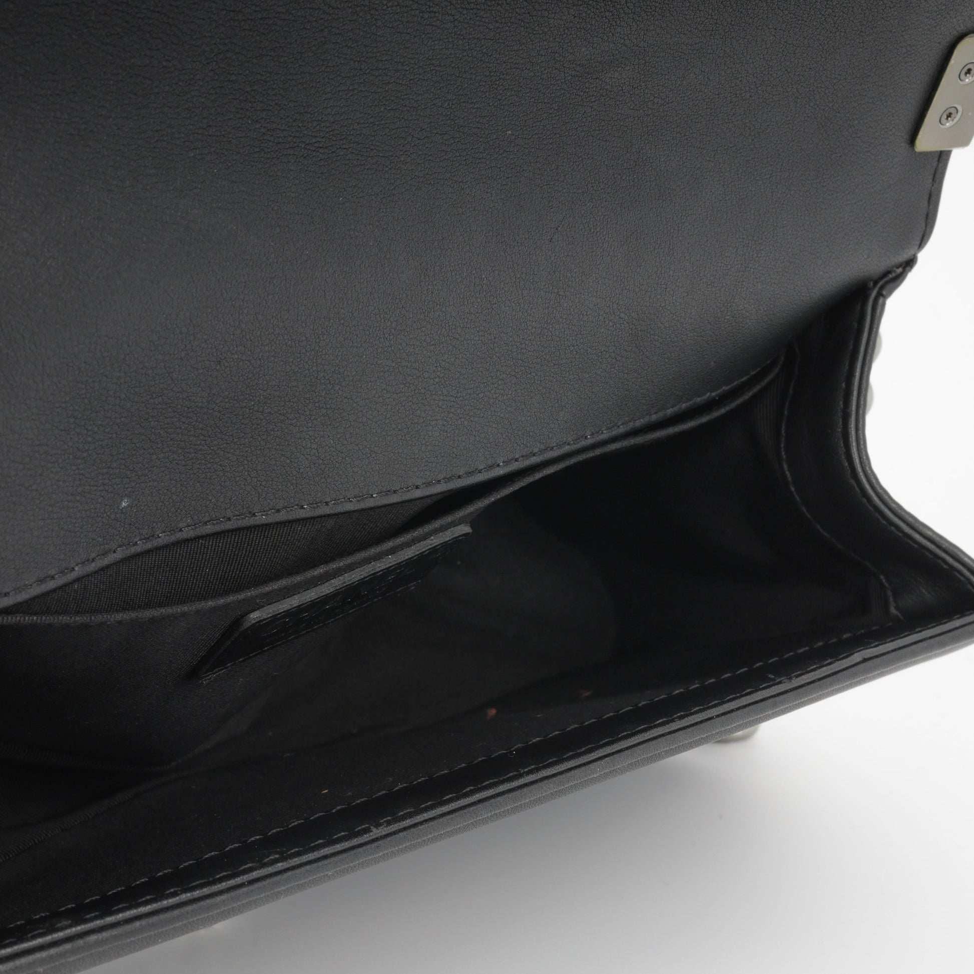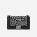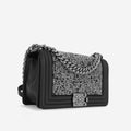 The ‘Boy’ bag, first introduced in 2011 and named after Coco Chanel’s lifetime love, is part of their iconic collection. This particular edition is created using calfskin leather, adorned with luxurious silver and black crystals. Can be worn with the chain doubled up over the shoulder for an evening look or wear cross body for a more casual style.