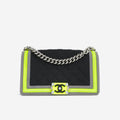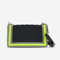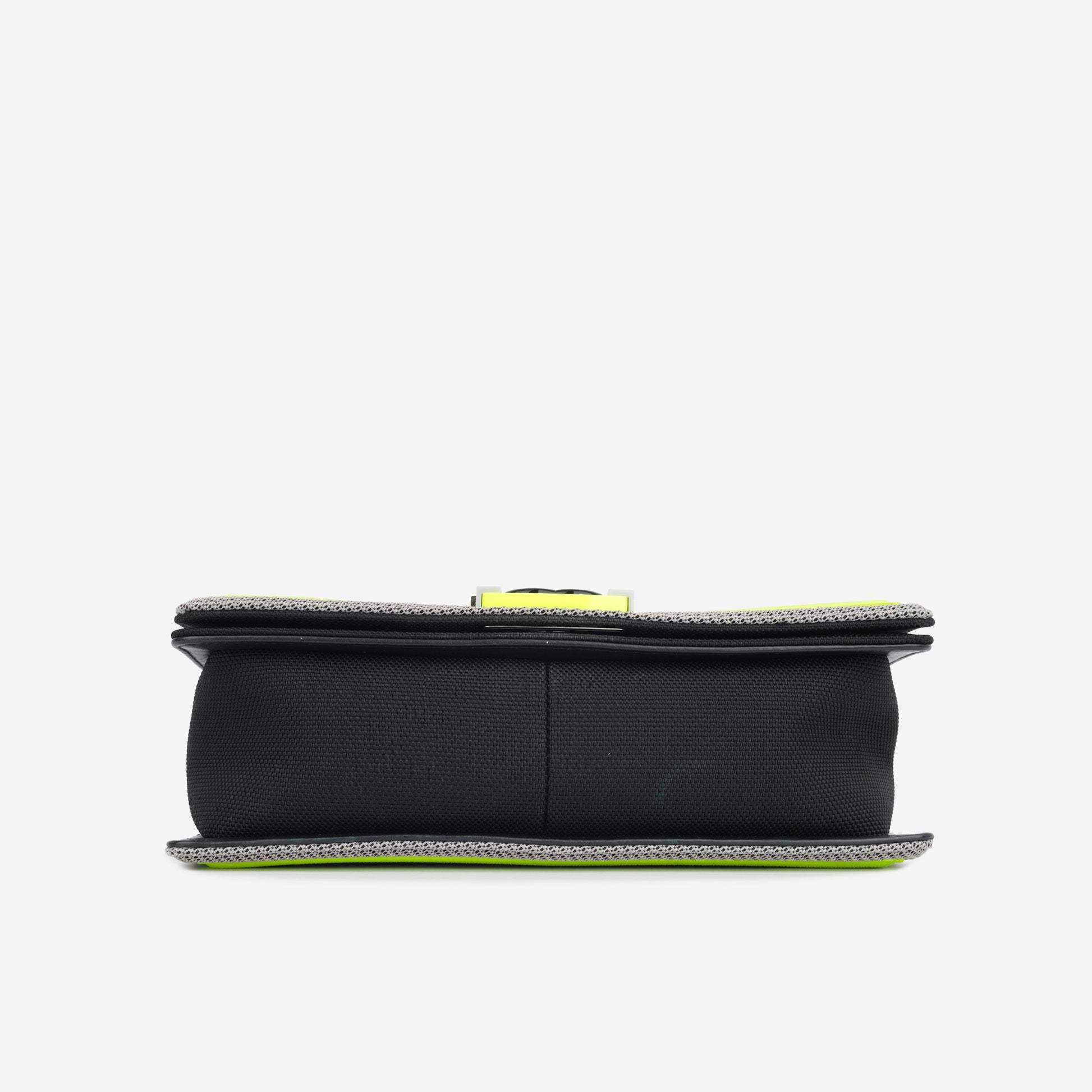The ‘Boy’ bag, first introduced in 2011 and named after Coco Chanel’s lifetime love, is part of their iconic collection. Wear with the chain doubled up over the shoulder for an evening look or wear cross body for a more casual style. Crafted from black, neon yellow, grey nylon adorned with silver hardware makes this bag a unique and statement piece.